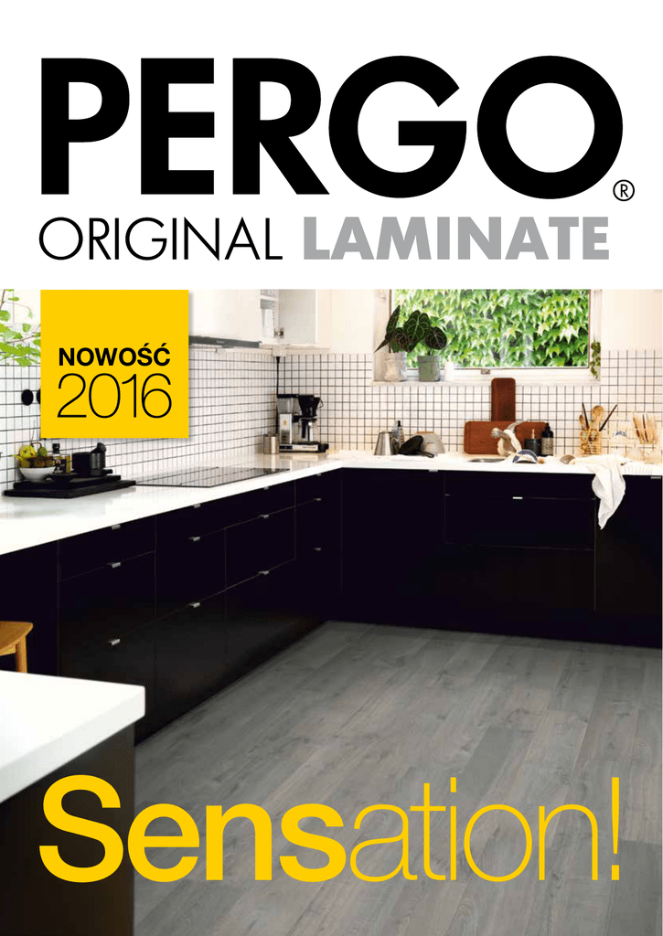 NOWOŚĆ 2016 Sensation! Witaj w domu Przebywanie w domu powinno sprawiać nam radość. To miejsce do relaksu, spotkań z przyjaciółmi, organizowania imprez lub delektowania się wolnym czasem w weekendowy poranek. Miejsce, gdzie można żyć bez zmartwień. Nasza firma szczyci się tytułem wynalazcy podłogi laminowanej. Podłogi stanowiącej połączenie pięknych wzorów i wyjątkowej trwałości. Podłogi laminowane Pergo są skonstruowane z myślą o zachowaniu pięknego wyglądu przez długie lata eksploatacji. Innymi słowy to doskonały wybór do domu, w którym chcesz mieć swobodę relaksu i głowę wolną od zmartwień. W tym roku proponujemy znaczące udoskona lenie naszej koncepcji podłogi laminowanej. Wprowadzając do oferty nową podłogę Sensation, pokonujemy dotychczasowe ograniczenia w kreowaniu wyglądu i wykończenia podłogi laminowanej. Jest to jeden z głównych powodów, dla których ze szczególną dumą przedstawiamy nasz nowy katalog. Witaj w domu Pergo! 3 long plank 8 natural variation 9 formaty 10 inspiracje 12 środowisko 48 klasy jakości 50 montaż 53 wykończenia 55 wzory 56 kolekcja domestic elegance 63 akcesoria 64 tabela kompletowania 72 informacje techniczne 74 sensation 35 lat temu wynaleźliśmy podłogę laminowaną TERAZ WYMYŚLAMY JĄ NA NOWO! 3 Czy dostrzegasz różnicę? Nowe, głębsze wytłoczenia podkreślają każdy słój we wzorach imitujących drewno. Piękne detale W każdym wzorze naturalny rysunek słojów drewna jest uwydatniony na całej powierzchni, łącznie z fugami. Wygląd, który ZACHWYCA Nowe matowe wykończenie wydobywa to, co najpiękniejsze w rysunku drewna, idealnie uzupełniając styl podłóg Pergo Sensation. Sprawdź, jakie to uczucie! Odwiedź najbliższego dealera i przekonaj się. To prawdziwa sensacja Nasza firma wynalazła laminowane panele podłogowe 35 lat temu. Wprowadzając do oferty podłogi Pergo Sensation, wymyślamy je na nowo. Nasza nowa kolekcja podłóg laminowanych nie została tak nazwana bez powodu. Różnica jest dostrzegalna na pierwszy rzut oka. Podłogi Pergo Sensation wyglądają inaczej niż inne podłogi laminowane. Spróbuj przeciągnąć palcem po deskach podłogi – czeka Cię nie lada niespodzianka. Autentyczne wrażenie naturalnej powierzchni drewnianej wynika z innowacyjnej techniki idealnego odtwarzania głębokich rowków w strukturze drewna. Ten naturalny wygląd uwydatnia matowe wykończenie, potęgujące wrażenie autentycz nego charakteru drewna. To wszystko oferuje podłoga Pergo Sensation. 5 Wyjątkowa wodoodporność Pergo Sensation to zupełnie nowy standard podłóg laminowanych – również w kategorii wodoodporności. Nie musisz się już przejmować zamoczeniem podłogi – masz do dyspozycji doskonałą alternatywę do kuchni, łazienek i przedpokojów! Nowe podłogi Pergo Sensation nie tylko zachwycają wyglądem, lecz również oferują imponujące parametry użytkowe. Innowacyjna technologia AquaSafe chroni nową podłogę przed działaniem wody jak nigdy dotąd! Warstwa zabezpieczająca nowe podłogi Sensation obejmuje również fugi, tworząc całkowicie uszczelnioną powierzchnię. Z kolei powłoka hydrofobowa na krawędziach desek eliminuje ryzyko przeniknięcia wody w głąb podłogi. Wodoodporna podłoga Sensation jest też higieniczna. Podobnie jak woda, zabrudzenia pozostają na powierzchni, dzięki czemu łatwo je zetrzeć. Można więc śmiało powiedzieć, że ze względu na wygląd i parametry użytkowe nowe podłogi Pergo to prawdziwa sensacja! DĄB FARMHOUSE, DESKA L0231-03371 6 Pełne zabezpieczenie! Aby całe pomieszczenie było równie wodoodporne jak podłoga Sensation, należy zabezpieczyć połączenia i krawędzie na obwodzie podłogi za pomocą odpowiednich akcesoriów. Więcej informacji na stronie 70. long plank DĄB KRÓLEWSKI, DESKA L0223-03360 Efektowna długość Być może zaliczasz się do osób preferujących podłogi wykonane z długich desek. Długie deski to jeden z głównych trendów we wzornictwie podłóg i nietrudno domyślić się, dlaczego. W naszej kolekcji podłóg w formie długich desek znajdują się wzory kreujące wrażenie czystych linii wizualnych i przestrzenności oraz nadające wnętrzu wyrazisty nowoczesny styl. Wymiary paneli podkreślają piękno natury i pozwalają cieszyć się nim również w domu. 8 Jeśli zależy Ci na jeszcze dłuższych deskach, wybierz format EndlessPlank™ opracowany przez Pergo. Pergo EndlessPlank™ to podłoga, która tworzy złudzenie niekończących się desek. Wzory na końcach paneli są idealnie dopasowane, zapewniając ciągłość rysunku na całej powierzchni – od ściany do ściany. Niedoskonała perfekcja Różnorodność to nieodłączna cecha natury, nadająca podłodze niepowtarzalny charakter. Pergo docenia przypadkowość występującą w naturze i wykorzystuje ją do projektowania wzorów. Stale opracowujemy nowe technologie, dzięki którym nasze podłogi laminowane nabierają coraz bardziej wyrafinowanego charakteru. Nasz innowacyjny patent Natural Variation™ nadaje wzorom podłóg laminowanych zupełnie nowy wymiar. Dzięki specjal nej technice losowo wzbogacającej każdą deskę o kredowy, rustykalny efekt istnieje możliwość stworze nia kilkuset różnych wzorów. Efektem jest wyjątkowe, bezkonkurencyjne połączenie wyrazistego charakteru drewna z zaletami podłogi laminowanej. natural variation DĄB KREDOWY SZARY, DESKA L0208-01812 9 Wybór właściwego wymiaru 1: 1380 x 190 mm 2: 1224 x 408 mm 3: 2050 x 205 mm 4: 1200 x 190 mm 1 2 3 4 Przy wyborze podłogi najpierw skupiamy się na jej wzorze. Jednak wzór deski to tylko jedna z wielu cech podłogi. Na całościowe wrażenie ogromny wpływ ma też format paneli. Podłogi laminowane Pergo są dostępne w czterech różnych formatach – od długich desek kreujących atmosferę nowoczesności i przestrzenności po szerokie płyty. Aby pogłębić wrażenie powierzchni podłogi drewnianej lub prawdz