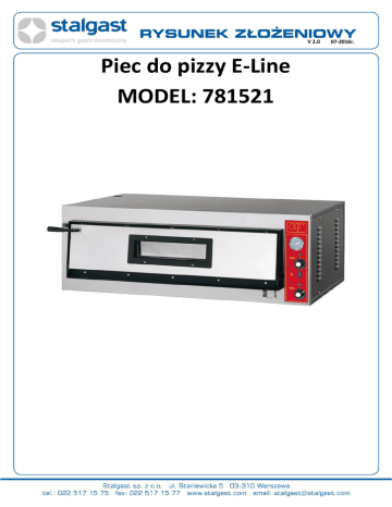 V 2.0 Piec do pizzy E-Line MODEL: 781521 07-2016r. LP. Numer katalogowy 1 V781521-01 2 V781521-02 3 V781521-03 4 V781521-04 5 V781521-05 6 V781521-06 7 V781521-07 8 V781521-08 9 V781521-09 10 V781521-10 11 V781521-11 12 V781521-12 13 V781521-13 14 V781521-14 15 V781521-15 16 V781521-16 17 V781521-17 18 V781521-18 19 V781521-19 20 V781521-20 21 V781521-21 22 V781521-22 23 V781521-23 24 V781521-24 25 V781521-25 26 V781521-26 27 V781521-27 28 V781521-28 29 V781521-29 30 V781521-30 31 V781521-31 32 V781521-32 33 V781521-33 34 V781521-34 35 V781521-35 36 V781521-36 37 V781521-37 38 V781521-38 39 V781521-39 Nazwa części Ramka szkła Szkło ochronne Wspornik Uchwyt przyczepności Zestaw montażowy rączki Rama drzwi Panel przedni drzwi Szamot Komin Komora gotowania Wspornik elementu grzewczego Lewy panel Material izolacyjny Zaślepka Wspornik listwy zacisków Uszczelka Szkło ochronne Lampa halogenowa Dysponent lampy Transformator Lampa Wspornik Wspornik lampy Listwa zacisków Termostat Termometr Lampa do sygnowania wspornika w użyciu Gałka Panel sterowania Przełącznik światła Prawa obudowa zewnętrzna pieca Panel z włókna ceramicznego Element grzewczy Panel sterowania Ramka drzwi Drzwi Panel drzwi Uszczelka szkła ochronnego Sprężyna do lampy