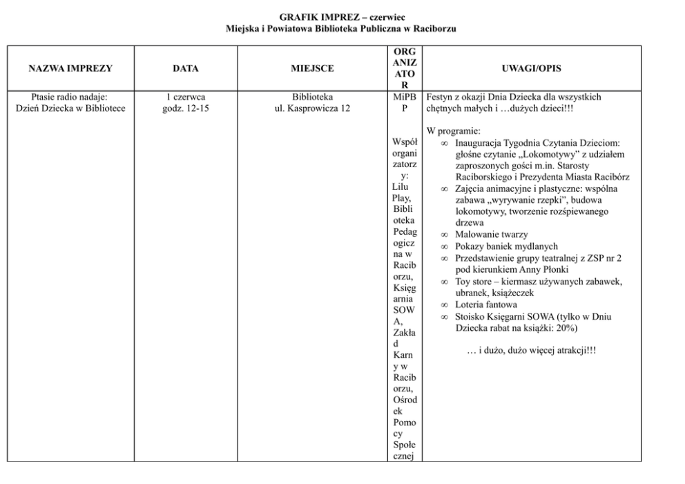 GRAFIK IMPREZ – czerwiec Miejska i Powiatowa