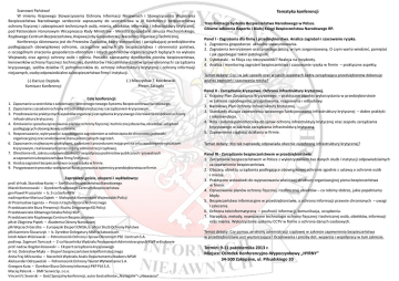 Szanowni Pañstwo! W imieniu Krajowego Stowarzyszenia Ochrony Informacji Niejawnych i Stowarzyszenia Wspierania Bezpieczeñstwa Narodowego serdecznie zapraszamy do uczestnictwa w III Konferencji bezpieczeñstwa ochrony fizycznej i zabezpieczeñ technicznych osób, mienia, obiektów, informacji i infrastruktury krytycznej, pod Patronatem Honorowym Wiceprezesa Rady Ministrów - Ministra Gospodarki Janusza Piechociñskiego, Rz¹dowego Centrum Bezpieczeñstwa, Krajowej Izby Gospodarczej i Naczelnej Organizacji Technicznej. Konferencja skierowana jest do Prezesów Zarz¹dów, kadry kierowniczej i zarz¹dzaj¹cej przedsiêbiorstw podlegaj¹cych obowi¹zkowej ochronie, szczególnie wa¿nych dla bezpieczeñstwa i obronnoœci pañstwa, o szczególnym znaczeniu gospodarczo-obronnym i innych podmiotów organizacyjnych bêd¹cych na wykazie Wojewody oraz agencji ochrony osób i mienia. Ponadto zapraszamy dyrektorów pionów bezpieczeñstwa, kierowników ochrony fizycznej i technicznej, dyrektorów i naczelników dzia³ów spraw obronnych i zarz¹dzania kryzysowego, szefów dzia³ów IT, pe³nomocników ds. ochrony infrastruktury krytycznej i ochrony informacji niejawnych, osoby odpowiedzialne za bezpieczeñstwo firmy i instytucji. (-) Mieczys³aw T. Koczkowski Prezes Zarz¹du (-) Dariusz Depta³a Komisarz Konferencji Cele konferencji: 1. Zapoznanie uczestników z za³o¿eniami tworzonego nowego Systemu Bezpieczeñstwa Narodowego. 2. Zapoznanie z zasadami ochrony infrastruktury krytycznej i zarz¹dzaniem kryzysowym. 3. Przedstawienie praktycznych aspektów organizacji zarz¹dzania kryzysowego i kierowania zespo³ami ochrony infrastruktury krytycznej. 4. Omówienie sposobu opracowania planów ochrony fizycznej i technicznej obszarów, obiektów i urz¹dzeñ podlegaj¹cych obowi¹zkowej ochronie. 5. Rozpoznawanie, wykrywanie i zapobieganie zagro¿eniom w odniesieniu do chronionej jednostki organizacyjnej oraz analizowanie stanu potencjalnych zagro¿eñ. 6. Zapoznanie z najlepszymi praktykami, zadaniami i procedurami maj¹cymi na celu zapobieganie sytuacjom kryzysowym, realizowanymi przez organy administracji rz¹dowej. 7. Okreœlenie ról, zakresu odpowiedzialnoœci i wspó³pracy podmiotów publicznych i prywatnych w zapewnieniu bezpieczeñstwa firmy/instytucji. 8. Analiza zagro¿eñ bezpieczeñstwa i ocena ryzyka w firmie. 9. Przygotowanie procedur wdra¿ania i funkcjonowania tajemnicy przedsiêbiorstwa w firmie. Zaproszeni goœcie, eksperci i wyk³adowcy: prof. dr hab. Stanis³aw Koziej – Szef Biura Bezpieczeñstwa Narodowego Marek Komorowski – Dyrektor Rz¹dowego Centrum Bezpieczeñstwa gen Pawe³ Pruszyñski – b. Z-ca Szefa ABW nadinspektor Mariusz D¹bek – Ma³opolski Komendant Wojewódzki Policji dr Przemys³aw Ligenza – Prezes Urzêdu Dozoru Technicznego Przedstawiciele Biura Prewencji i Ruchu Drogowego KG Policji Przedstawiciele G³ównego Sztabu Policji KGP Przedstawiciele Rz¹dowego Centrum Bezpieczeñstwa p³k dr Zbigniew Pi¹tek – Akademia Obrony Narodowej p³k Wojciech Garstka – Europejski Ekspert ENISA, b. oficer S³u¿b Ochrony Pañstwa p³k Kazimierz Œlusarczyk – b. Dyrektor Delegatury ABW w Katowicach kmdr Adam Wiœniewski – Pe³nomocnik Ochrony i Spraw Obronnych PSE Centrum S.A. podinsp. Zygmunt Tomczyk – Z-ca Naczelnika Wydzia³u Postêpowañ Administracyjnych KWP w Krakowie prof. nadzw. Bogdan Kosowski – Ekspert zarz¹dzania kryzysowego dr in¿. Dobros³aw M¹ka – Ekspert bezpieczeñstwa teleinformatycznego Anita Fraj-Milczarska – Naczelnik Wydzia³u Analiz Departamentu Nadzoru MSW Aleksander Odrzywolski – Pe³nomocnik Ochrony Tauron Wytwarzanie S.A. Grzegorz Kuta – Dyrektor Biura Ochrony Informacji PKP PLK S.A. Maciej Palenik – DMF Serwis Sp. z o.o. Vincent V. Severski – Goœæ Specjalny konferencji, autor bestsellerów „Nielegalni” i „Niewierni” Tematyka konferencji Transformacja Systemu Bezpieczeñstwa Narodowego w Polsce. G³ówne za³o¿enia Raportu i Bia³ej Ksiêgi Bezpieczeñstwa Narodowego RP. Panel I - Zagro¿enia dla firmy i przedsiêbiorstwa. Analiza zagro¿eñ i szacowanie ryzyka. 1. Zagro¿enia gospodarcze aktualne uwarunkowania. 2. Zagro¿enia terroryzmem oraz przestêpczoœci¹, w tym zorganizowan¹. O czym warto wiedzieæ, pamiêtaæ i jak zapobiegaæ takim patologiom. 3. Cyberataki - to fikcja czy rzeczywistoœæ? Reakcja na incydenty. 4. Analiza i monitoring zagro¿eñ bezpieczeñstwa i szacowanie ryzyka w firmie – praktyczne aspekty. Temat debaty: Czy i w jaki sposób oraz w jakich aspektach kadra zarz¹dzaj¹ca przedsiêbiorstw dokonuje analizy zagro¿eñ i szacowania ryzyka? Panel II - Zarz¹dzanie kryzysowe. Ochrona infrastruktury krytycznej. 1. Krajowy Plan Zarz¹dzania Kryzysowego – praktyczne aspekty wykorzystania w przedsiêbiorstwie w zakresie zapobiegania, przygotowania, reagowania i odbudowy. 2. Narodowy Plan Ochrony Infrastruktury Krytycznej. 3. Standardy s³u¿¹ce zapewnieniu sprawnego funkcjonowania infrastruktury krytycznej – dobre praktyki i rekomendacje. 4. Rola i zadania pe³nomocnika do spraw ochrony infrastruktury krytycznej oraz zespo³u zarz¹dzania kryzysowego w zakresie zarz¹dzania infrastruktur¹ krytyczn¹. 5. Zapewnienie ci¹g³oœci dzia³ania w firmie. Temat debaty: Kto tak naprawdê odpowiada obecnie za ochronê infrastruktury krytycznej? Panel III - Zarz¹dzanie bezpieczeñstwem w przedsiêbiorstwie. 1. Zarz¹dzanie bezpieczeñstwem w Polsce z wykorzystaniem baz danych s³u¿b i instytucji odpowiedzialnych za zapewnienie bezpieczeñstwa. 2. Obszary, obiekty, urz¹dzenia podlegaj¹ce obowi¹zkowej ochronie zgodnie z ustaw¹ o ochronie osób i mienia. 3. Praktyczne wskazówki do wypracowania w³aœciwej struktury organizacyjnej pionu bezpieczeñstwa w firmie. 4. Opracowanie planów ochrony fizycznej i technicznej obiektów – co robimy dobrze, jakie pope³niamy b³êdy. 5. Bezpieczeñstwo informacyjne w przedsiêbiorstwie, a ochrona informacji prawnie chronionych – uwagi i zaleceni