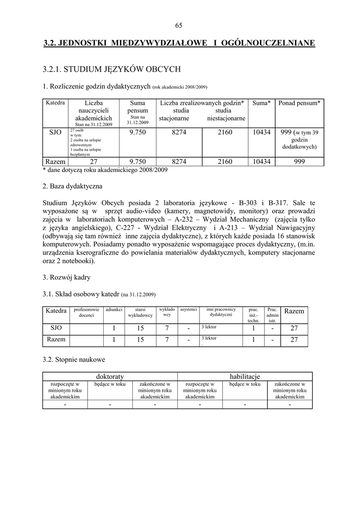 3.2. jednostki międzywydziałowe i ogólnouczelniane 3.2.1. studium