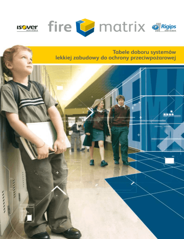 fire matrix Tabele doboru systemów lekkiej zabudowy do ochrony przeciwpożarowej 2 fire matrix SŁOWO WSTĘPNE Podczas spotkań z projektantami oraz wykonawcami inwestycji budowlanych wielokrotnie miałem okazję przekonać się o problemach związanych z projektowaniem i wykonywaniem elementów budynku, spełniających określone w przepisach wymagania z zakresu ochrony przeciwpożarowej. Szczególne trudności występowały przy stosowaniu zabezpieczeń przeciwpożarowych, stalowych lub drewnianych elementów stanowiących konstrukcje nośne budynku lub jego dachu. Dobór lekkich ścian o wymaganej odporności ogniowej często nasuwał wiele problemów głównie przy wyższych klasach odporności ogniowej. Trudności te komplikowały prowadzenie inwestycji a nierzadko były powodem negatywnego stanowiska Państwowej Straży Pożarnej podczas jej odbioru. Wychodząc naprzeciw tym problemom autorzy Poradnika przedstawili podstawowe wymagania ochrony przeciwpożarowej dotyczące projektowania elementów budynków. W Poradniku zamieszczono także praktyczne przykłady obliczenia gęstości obciążenia ogniowego oraz doboru klasy odporności pożarowej budynku i odporności ogniowej elementów budowlanych. Niezwykle cenną częścią publikacji jest zamieszczenie konkretnych systemów i rozwiązań projektowych. Takie praktyczne podejście powoduje, że Poradnik może stać się bardzo przydatny w zawodowej działalności projektantów, rzeczoznawców do spraw zabezpieczeń przeciwpożarowych jak i przedstawicieli jednostek i organów kontrolnych. bryg. w st. spocz. mgr inż. Antoni Celej Rzeczoznawca do spraw zabezpieczeń przeciwpożarowych Wydanie 5 / grudzień 2011 3 WYMAGANIA PRAWNE ZWIĄZANE Z OCHRONĄ PPOŻ. R E G U L A C J E P R A W N E Podstawowe wymagania prawne związane z ochroną przeciwpożarową budynków zapisane zostały w Rozporządzeniu Ministra Infrastruktury z dnia 12 marca 2009 r. w sprawie warunków technicznych jakim powinny odpowiadać budynki i ich usytuowanie. Zgodnie z Działem VI „BEZPIECZEŃSTWO POŻAROWE” powyższego dokumentu (§ 207. 1.) budynek i urządzenia z nim związane powinny być zaprojektowane i wykonane w sposób zapewniający w razie pożaru: 1) nośność konstrukcji przez czas wynikający z rozporządzenia 2) ograniczenie rozprzestrzeniania się ognia i dymu w budynku 3) ograniczenie rozprzestrzeniania się pożaru na sąsiednie budynki 4) możliwość ewakuacji ludzi a także uwzględniający bezpieczeństwo ekip ratowniczych. P O D S T A W O W E P O J Ę C I A I D E F I N I C J E Odporność ogniowa – zdolność elementu budynku do spełniania określonych wymagań w znormalizowanych warunkach fizycznych, odwzorowujących porównawczy przebieg pożaru. Miarą odporności ogniowej jest wyrażony w minutach czas od początku badania do chwili osiągnięcia przez element próbny jednego z trzech głównych stanów granicznych, tj.: R – Stanu granicznego nośności ogniowej, tj. stanu, w którym element próbny przestaje spełniać swoją funkcję nośną wskutek jednej z przyczyn: a) zniszczenia mechanicznego lub utraty stateczności; b) przekroczenia granicznych wartości przemieszczeń lub odkształceń. E – Stanu granicznego szczelności ogniowej, tj. stanu, w którym element próbny przestaje spełniać funkcję oddzielającą na skutek: a) pojawienia się na powierzchni nienagrzewanej elementu próbnego płomieni lub powstania pęknięć lub szczelin o rozwartości i długości przekraczającej wartości graniczne, przez które przenikają płomienie lub gorące gazy; b) odpadnięcia od konstrukcji. I – Stanu granicznego izolacyjności ogniowej, tj. stanu, w którym element próbny przestaje spełniać funkcję oddzielającą na skutek przekroczenia na powierzchni nienagrzewanej granicznej wartości temperatury. Klasa odporności ogniowej – wyrażona w minutach cecha, charakteryzująca odporność ogniową elementu budynku, zdefiniowana w zależności od funkcji elementu budynku (ściana wewnętrzna; strop; główna konstrukcja budynku) przez jeden lub kombinację dwóch lub trzech z powyżej opisanych kryteriów oceny odporności ogniowej, tj.: R – nośność ogniowa; E – szczelność ogniowa oraz I – izolacyjność ogniowa - np. R120 lub EI60 lub REI30. Klasa odporności pożarowej budynku – symbol, któremu przyporządkowano wymagania dotyczące właściwości materiałów i elementów budynku. Zgodnie z obowiązującymi przepisami ustanowiono pięć klas odporności pożarowej budynków, podanych w kolejności od najwyższej do najniższej i oznaczonych literami: A, B, C, D, E. Elementom budynku zaliczonego do odpowiedniej klasy odporności pożarowej przyporządkowano odpowiadające im warunki w postaci wymaganej klasy odporności ogniowej oraz w zakresie stopnia rozprzestrzeniania ognia. Strefa pożarowa – przestrzeń wydzielona w taki sposób, aby w określonym czasie pożar nie przeniósł się na zewnątrz lub do wewnątrz wydzielonej przestrzeni. Element oddzielenia przeciwpożarowego – jest to element konstrukcji budynku (ściana, strop) o określonej klasie odporności ogniowej, którego zadaniem jest wydzielenie strefy pożarowej. Gęstość obciążenia ogniowego [Q] – wyrażona w [MJ/m2] całkowita energia powstająca podczas spalania materiałów palnych zgromadzonych w określonej, ograniczonej przestrzeni (pomieszczeniu) wraz z materiałami palnymi podłóg, sufitów, ścian wewnętrznych i przepierzeń oraz okładzin ściennych. Obliczanie gęstości obciążenia ogniowego należy przeprowadzić zgodnie z PN-B-02852:2001. (Przykład obliczenia na stronie 5.) U W A G A Niniejsze wydawnictwo zostało opracowane w oparciu o aktualny na dzień 15.02.2011 stan prawny oraz obowiązujące w tym dniu rozwiązania dla systemów lekkiej zabudowy wnętrz, tj. m. in. dla: ścian działowych i okładzin ściennych; sufitów podwieszanych i okładzin sufitowych; zabudów poddaszy i elementów drewnianej i s