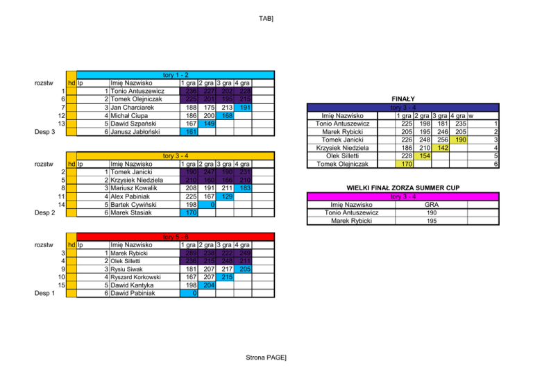 TAB] rozstw lp Imię Nazwisko 1 gra 2 gra 3 gra 4