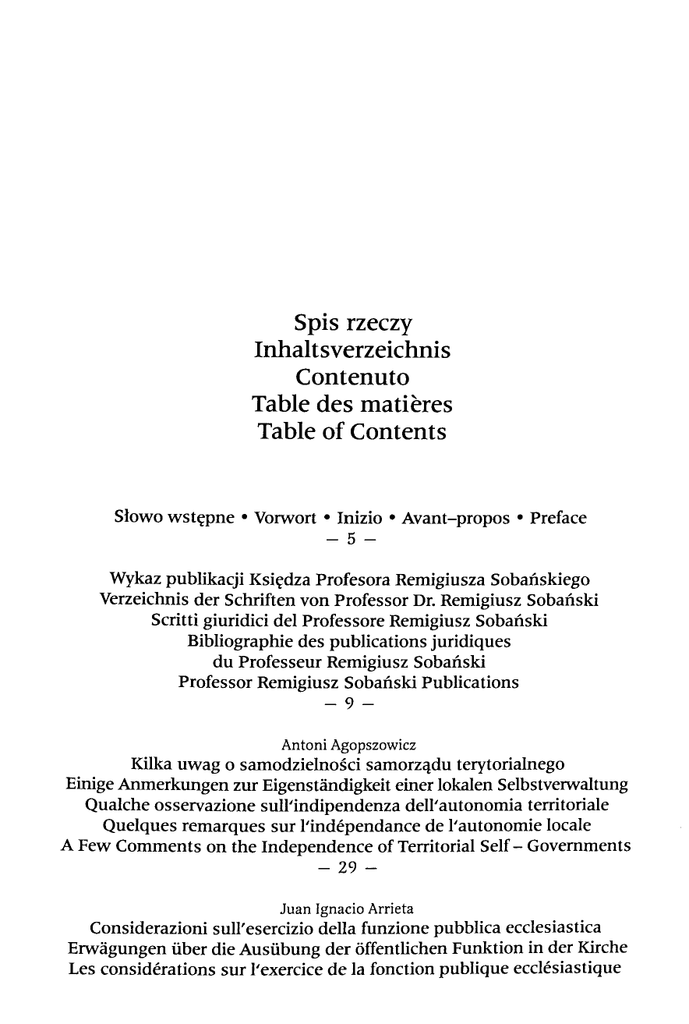 Spis rzeczy Inhaltsverzeichnis Contenuto Table des matières Table