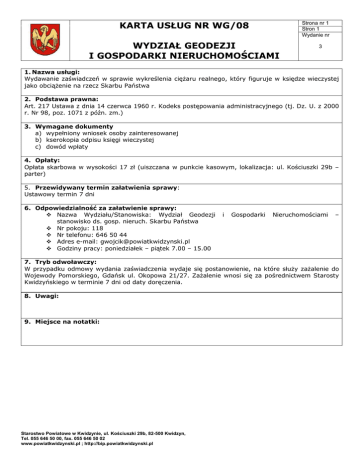 KARTA USŁUG NR WG/08 WYDZIAŁ GEODEZJI I GOSPODARKI