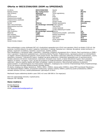 Oferta nr 8023/2566/ODS (DOM na SPRZEDAŻ)