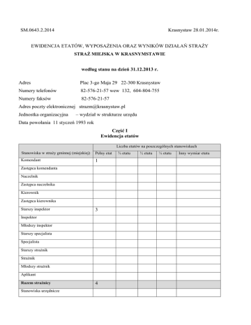 ewidencja etatów, wyposażenia oraz wyników działań straży