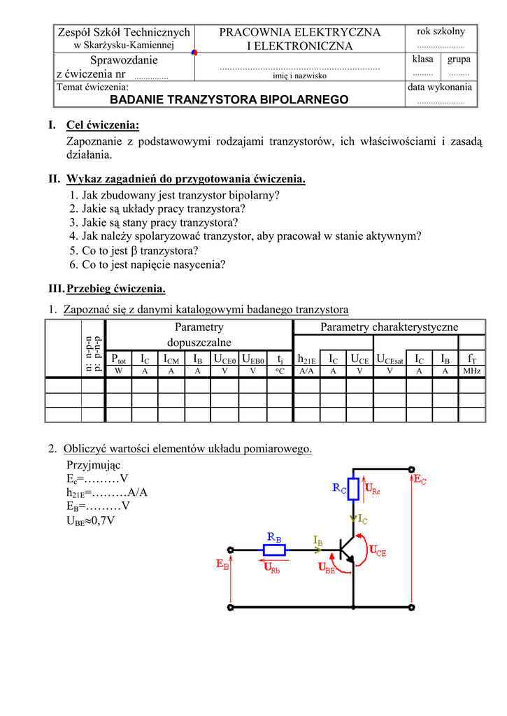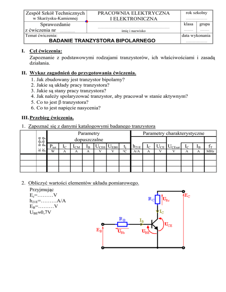 Badanie tranzystorów - Zespół Szkół Technicznych im. Armii