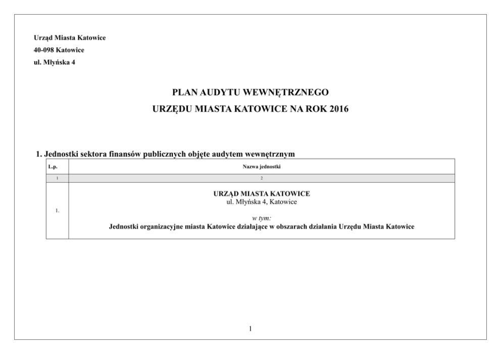plan audytu wewnętrznego urzędu miasta katowice