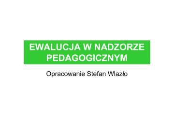 EWALUCJA W NADZORZE PEDAGOGICZNYM Opracowanie Stefan Wlazło EWALUACJA, TO WARTOŚCIOWANIE EWALUACJA • e-valesco, -ere, -ui – stawać się silnym, potężnieć”[1] oraz „evaeleo, -ere – nabierać sił, wzmagać się, przybierać”[2]. [1] Słownik łacińsko-polski,. Red K. Kumaniecki Warszawa 1999, s. 447 • [2] Słownik łacińsko-polski,. Red K. Kumaniecki Warszawa 1999, s. 162 EWALUACJA Francuskie: „evaluer”, czyli rozwijać się, a także pochodne: „valeur” – EWALUACJA angielski „value” – wartość, nadawać znaczenie, doceniać, w niemieckim „werten” – wartościować EWALUACJA Istotą ewaluacji jest rozwój, zaakcentowany w Rozporządzeniu jako doskonalenie jakości pracy szkoły. EWALUACJA Jakości - rozumianej jako doprowadzanie do edukacyjnego rozwoju ucznia (dziecka, wychowanka), na co wyraziście wskazują wymagania skoncentrowane na pozyskiwaniu informacji o tym rozwoju. „Dyrektor przeprowadza ewaluację wewnętrzną i wykorzystuje jej wyniki do doskonalenia jakości pracy szkoły” Rozporządzenie dot. stosowania nadzoru pedagogicznego (§ 20.1.1)). Zatem ewaluacja staje się strategią jakościowego rozwoju szkoły OD DO Dawny nadzór: • Kontrola i ocenianie Ewaluacja: • Wartościowanie • Relacje przełożonypodwładny • Współdziałanie zespołowe • Biurokratyzowanie działań • Rozbudzanie autorefleksji nad wykonywanymi działaniami Ewaluacja, to wartościowanie, czyli refleksja nad tym, czy nasze działania przynoszą pożądane efekty, czy te działania można ulepszyć, może zmienić, względnie – czy należy je zakończyć. I co najważniejsze – nie jest ocenianiem. Zatem, ewaluacja jest dokonywana przez nas i w odniesieniu do działań edukacyjnych, które współtworzymy Proces ewaluacyjny (wartościujący) wymaga spełnienia pewnych reguł konstrukcyjnych. Oto najważniejsze z nich. Ewaluacja zawsze dotyczy konkretnych działań. Ewaluacje muszą być zaplanowane OKREŚLANIE CELU EWALUACJI EWALUACJA MA DOSTARCZAĆ WIEDZĘ W CELU USTALENIA WARTOŚCI WYKONYWANYCH DZIAŁAŃ EDUKACYJNYCH Czyli jest to proces gromadzenia, opracowywania i przedstawiania informacji na temat wartości przypisywanej przez wykonawców działalności edukacyjnej W szkole występujemy zatem w roli badacza własnej praktyki działania edukacyjnego Po to, by „…ustanawiać publiczne zaufanie do szkoły” (H. Simon, Samoewaluacja szkoły. W: Ewaluacja w szkole, pod red. H. Mizerka, Olsztyn 1997, s. 59 W odniesieniu do efektów działań ewaluacyjnych nazywamy to ewaluacją konkluzywną, W odniesieniu do procesów nazywamy to ewaluacją formatywną, z możliwością wpływania na korektę procesu, który podlega tej ewaluacji Zatem cel ewaluacji, to: Formułowanie sadów, opinii na temat wartości prowadzonych w szkole działalności edukacyjnej, a także innej, zawartej w statucie szkoły Czyli cel ewaluacji – to stwierdzenie, po co i co chcemy poddać badaniu ewaluacyjnemu, czyli pozyskanie informacji, które zostaną wykorzystane w naszym działaniu Zatem przykładowe cele w odniesieniu do efektów, to przykładowo: „Jak przygotowujemy uczniów do zewnętrznego sprawdzianu, egzaminu”? Efekty: „W jakim stopniu zachowania uczniów są zgodne z przyjętym programem wychowawczym”? Procesy: „Co uznamy za pozytywne działania aktywne uczniów podczas zajęć”? Procesy: „W jakim stopniu ocenianie budzi u uczniów refleksję o własnej pracy” Środowisko: „W jakich działaniach możemy liczyć na współdziałanie rodziców” Środowisko: „Skąd wiemy, że tworzymy pozytywny wizerunek szkoły w naszym środowisku?” Podsumowanie zagadnienia celów: „Dlaczego przeprowadzasz ewaluację”? „Komu ma służyć ewaluacja”? C. Robson. Projektowanie ewaluacji. W: Ewaluacja w edukacji, pod red. L. Korporowicza, Warszawa 1997, s. 159 Pytania kluczowe: uszczegółowienie działania ewaluacyjnego Pytania kluczowe • „Jak przygotowujemy uczniów do zewnętrznego sprawdzianu, egzaminu”? „Jakie stosujemy działania edukacyjne, aby uczniowie odnieśli sukces na miarę swoich możliwości? Jaka jest nasza diagnoza o zewnętrznych wynikach w ciągu ostatnich lat? Pytania kluczowe • W jakim stopniu • W jaki sposób dokonamy tej zachowania analizy? uczniów są W jakim stopniu zgodne z obserwowalne zachowania przyjętym uczniów są programem zgodne z celami wychowawwychowania? czym”? Pytania kluczowe • W jaki • W jakim sposób stopniu dowiemy się ocenianie o tym? budzi u • Skąd wiemy, uczniów że to refleksję o ich ocenianie własnej jest trafne? pracy”? Pytania kluczowe • Co możemy • W jakich uznać za działaniach sukces możemy współdziała liczyć na -nia w współdziałaostatnich nie latach? rodziców” Na każde pytanie kluczowe musimy znaleźć odpowiedź, zatem nie powinno ich być zbyt wiele Kryteria ewaluacji: uszczegółowienie pytań kluczowych Kryteria ewaluacji „Jak przygotowujemy uczniów do zewnętrznego sprawdzianu, egzaminu”? • Ustalenie, w jakim stopniu potrafiliśmy rozbudzić ambicje uczniów Kryteria ewaluacji „W jakim stopniu zachowania uczniów są zgodne z przyjętym programem wychowawczym”? • Uczniowie czują się w szkole bezpieczni • uczniowie akceptują koncepcję wychowawczą szkoły Kryteria ewaluacji • W jakim • Ocenianie stopniu uczniów daje ocenianie im informację budzi u o efektach uczniów nauki i refleksję o ich motywuje ich własnej do uczenia się pracy”? Kryteria ewaluacji • W jakich • Szkoła działaniach pozyskuje i możemy wykorzystuje liczyć na opinie współdziałarodziców na nie temat swojej rodziców” pracy - POWIERZANIE WYKONAWCOM - POZYSKIWANIE INFORMACJI , SPOSOBY JEJ ZDOBYWANIA - INTERPRETOWANIE DANYCH ILOŚCIOWYCH I JAKOŚCIOWYCH - TWORZENIE KOŃCOWEGO RAPORTU. Procedury ewaluacji Opracowanie Stefan Wlazło Pojęcie ewaluacji • Łączy się z konkretnymi działaniami. • Ma charakter wartościujący, ale nie jest oc