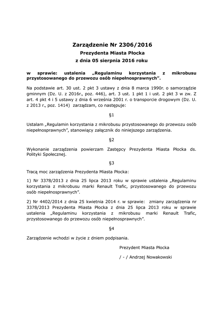 Nr 2306/16 z dnia 05 sierpnia 2016r. - Urząd Miasta Płocka