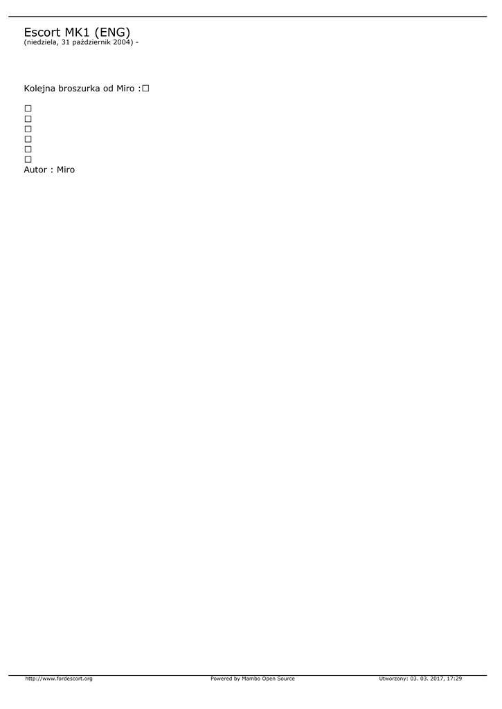 Escort MK1 (ENG) (niedziela, 31 październik 2004) - Kolejna broszurka od Miro : Autor : Miro http://www.fordescort.org Powered by Mambo Open Source Utworzony: 03. 03. 2017, 17:29