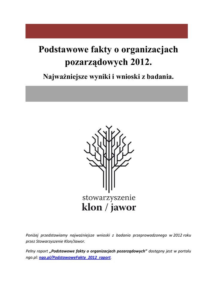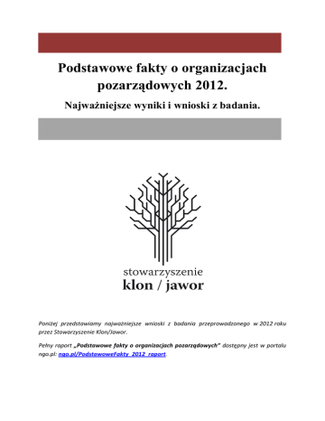 Podstawowe fakty o organizacjach pozarządowych 2012.