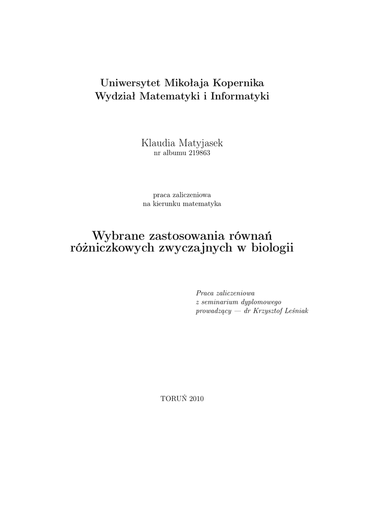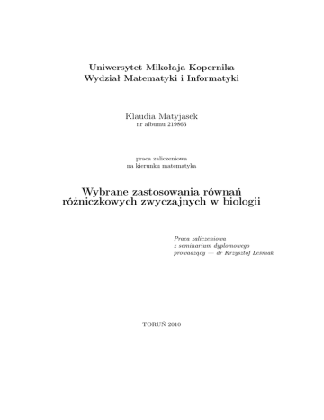 Wybrane zastosowania równań różniczkowych zwyczajnych w biologii