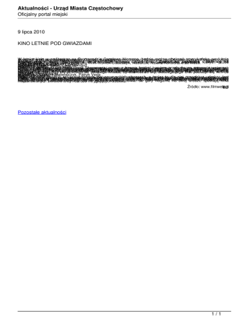 Aktualności - Urząd Miasta Częstochowy Oficjalny portal miejski 9 lipca 2010 KINO LETNIE POD GWIAZDAMI W letnim „ILUZJA”. kinie oraz w amfiteatrze na Promenadzie Czesława Niemena, można amerykańską produkcję „Książę polską komedię „Ciacho”. Koordynatorem projekcjibędzie filmowych jestobejrzeć Ośrodek Kultury Filmowej – Kino Studyjne Początek imprezy godzinie 21.30letniego Seanse Persji” kina letniego organizowane w Muniek ramach „Zostań na oraz pokładzie baw się na Promenadzie”. Akcję zakończą w osą dniach 27-28 sierpnia cyklu „XVIIIimprez DniNatalia Częstochowy”, podczas przed częstochowską publicznością wystąpią m.in. Staszczyk, Habakuk, Kukulska Mezo. -których Opis filmów: KSIĄŻE PERSJI: PIASKI CZASU reżyseria: Mike Newell scenariusz: Boaz Yakin, Carlo Bernard produkcja: USA gatunek: Fantasy, Przygodowy czas: 116 min. Dastan, najmłodszy synszuka króla Persji Sharamana, razem z rozprawić trzema braćmi i zdrajcami. wujem przebywa nazdobywania wyprawie wojennej. Udaje się ich przechwycić karawanę przemytników, na podstawie której że Święte Miasto Alamut jest sojusznikiem wrogów. zakazowi króla wyruszają się zezstwierdzają, czasie twierdzy, każdy zimwraz czterech braci odpowiedniego trofeum dla ojca. Najstarszy Tus, radzi Dastanowi, bypochłonięty. podarował mu wspaniałą szatę. Posię powrocie do do domu, kiedy tylko Sharaman nakłada jąnich, na siebie, zostaje przez nią Dastan, zdecyduje porwaną z Wbrew Alamut księżniczką Taminą, uciekając przed złaknionym karyW dla rzekomego mordercy króla kapitanem straży, odkrywają niezwykłe właściwości tajemniczego sztyletu znalezionego w Alamut. Dastan, wraz z towarzyszką, powrócić Świętego Miasta, by dowiedzieć się, dlaczego jego brat posłużył się nim do pozbycia się ojca. CIACHO reżyseria: Patryk Vega scenariusz: Dominik Matwiejczyk, Patryk Vega produkcja: Polska gatunek: Komedia czas: 115 min. Basia nie umie chodzić w sukienkach, ani specjalnych. na oznacza wysokich obcasach, a taniec to dla niej się prawdziwa Jest alenie potrafi za ani to skakać po ciężarówkach i rzucić to na kolana prawie każdego faceta. I trudno sięudręka. temu swoim dziwić -filigranowa, jest zadziorną chłopczycą, pracuje w służbach Pewnego razu Basia zakochuje bez pamięci ale gdy Jan ujawnia swe prawdziwe oblicze, dla niej I prawdopodobnie nie poradziłaby sobie zszefie, nimi, gdyby pomoc jej trzech braci. David przystojny ginekolog, Karolek, który chciałby Krzyś, całkowicie zdominowany przez ostrą żonę, choć wydają się nieporadni, są zdeterminowani iantyterrorystą zrobiąw niemal wszystko, żeby uratować siostrę. Zanim jednak wywrócą świat do kłopoty. góry nogami, na swej zostać drodze spotkają kilkai nieplanowanych zwrotów akcji i bardzo intrygujących kobiet... Źródło: www.filmweb.pl BO Pozostałe aktualności 1/1 Powered by TCPDF (www.tcpdf.org)