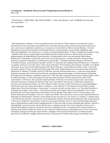 szczególny sposób czci się Ciało, Krew i Serce Jezusa Chrystusa. W tym miejscu pozwól drogi czytelniku, że na dłużej