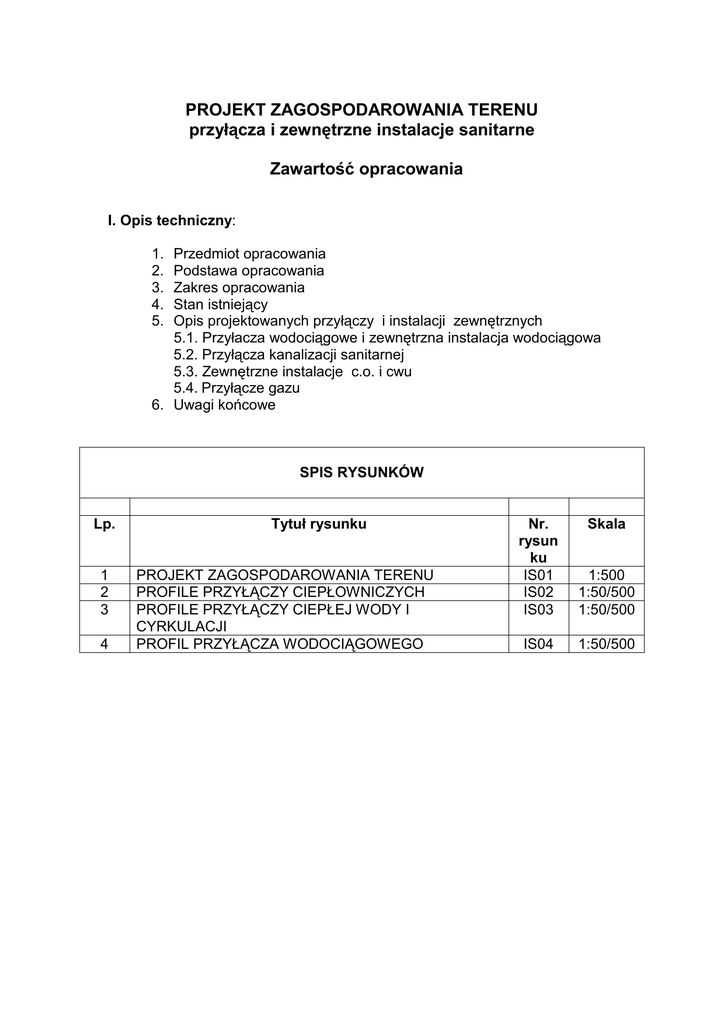 PROJEKT ZAGOSPODAROWANIA TERENU przyłącza i zewnętrzne