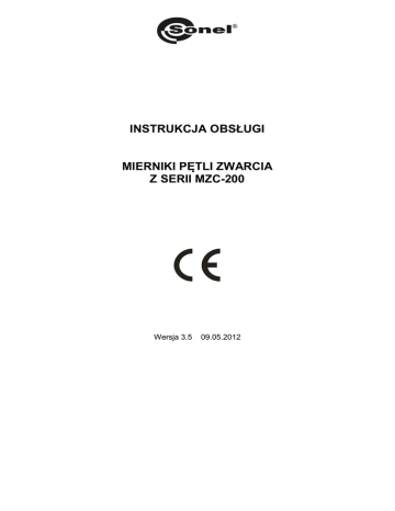INSTRUKCJA OBSŁUGI MIERNIKI PĘTLI ZWARCIA Z SERII MZC-200 Wersja 3.5 09.05.2012 SPIS TREŚCI 1 WSTĘP .............................................................................................................. 5 2 WPROWADZENIE.......................................................................................... 5 3 BEZPIECZEŃSTWO....................................................................................... 6 4 OPIS I INFORMACJE O DZIAŁANIU ......................................................... 7 4.1 CHARAKTERYSTYKA PRZYRZĄDÓW Z RODZINY MZC-200.............................. 7 4.2 WYPOSAŻENIE STANDARDOWE ....................................................................... 7 4.3 WYPOSAŻENIE DODATKOWE ........................................................................... 7 4.4 ROZMIESZCZENIE GNIAZD I KLAWISZY ............................................................ 8 4.4.1 Gniazda ..................................................................................................... 9 4.4.2 Klawiatura................................................................................................. 9 4.5 WYŚWIETLACZ CIEKŁOKRYSTALICZNY (LCD).............................................. 10 4.6 BRZĘCZYK ..................................................................................................... 11 4.7 PRZEWODY I KOŃCÓWKI POMIAROWE ........................................................... 12 5 MAGAZYNOWANIE .................................................................................... 12 6 ROZPOCZĘCIE EKSPLOATACJI ............................................................. 12 7 OBSŁUGA....................................................................................................... 13 7.1 PRZYGOTOWANIE MIERNIKA DO PRACY ........................................................ 13 7.2 WYMIANA BATERII ........................................................................................ 13 7.3 WARUNKI WYKONANIA POMIARU I UZYSKANIA POPRAWNYCH WYNIKÓW .... 14 7.4 SPOSÓB PODŁĄCZANIA MIERNIKA ................................................................. 15 7.5 POMIAR NAPIĘCIA PRZEMIENNEGO ................................................................ 16 7.6 POMIAR PĘTLI ZWARCIA ................................................................................ 16 7.6.1 Zmiana napięcia nominalnego sieci......................................................... 16 7.6.2 Wyświetlanie wyniku pomiaru w postaci rezystancji lub prądu ............... 17 7.6.3 Wybór długości przewodów pomiarowych............................................... 18 7.6.4 Wykonanie pomiaru i odczyt wyniku........................................................ 18 7.7 POMIARY REZYSTANCJI UZIEMIEŃ ................................................................. 19 7.8 KONTROLA CIĄGŁOŚCI PRZEWODÓW OCHRONNYCH I POŁĄCZEŃ WYRÓWNAWCZYCH ....................................................................................... 20 8 ROZWIĄZYWANIE PROBLEMÓW .......................................................... 21 8.1 OSTRZEŻENIA I INFORMACJE WYŚWIETLANE PRZEZ MIERNIK ....................... 21 8.1.1 Przekroczenie zakresu pomiarowego ....................................................... 21 8.1.2 Informacje o stanie baterii....................................................................... 21 8.2 KOMUNIKATY O BŁĘDACH WYKRYTYCH W WYNIKU SAMOKONTROLI ........... 21 8.3 ZANIM ODDASZ MIERNIK DO SERWISU ........................................................... 22 9 CZYSZCZENIE I KONSERWACJA ........................................................... 22 10 ROZBIÓRKA I UTYLIZACJA .................................................................... 22 11 ZAŁĄCZNIKI................................................................................................. 23 11.1 11.2 11.3 DANE TECHNICZNE .................................................................................... 23 PRODUCENT............................................................................................... 27 USŁUGI LABORATORYJNE .......................................................................... 27 3 4 1 Wstęp Dziękujemy za zakup naszego miernika do pomiaru rezystancji pętli zwarcia. Mierniki z rodziny MZC-200 są nowoczesnymi, wysokiej jakości przyrządami pomiarowymi, łatwymi i bezpiecznymi w obsłudze. Jednak przeczytanie niniejszej instrukcji pozwoli uniknąć błędów przy pomiarach i zapobiegnie ewentualnym problemom przy obsłudze miernika. Instrukcja dotyczy mierników MZC-200, MZC-201, MZC-202 i MZC-203. W niniejszej instrukcji posługujemy się trzema rodzajami ostrzeżeń. Są to teksty w ramkach, opisujące możliwe zagrożenia zarówno dla użytkownika, jak i miernika. Teksty rozpoczynające się słowem ‘OSTRZEŻENIE:’ opisują sytuacje, w których może dojść do zagrożenia życia lub zdrowia, jeżeli nie przestrzega się instrukcji. Słowo ‘UWAGA!’ rozpoczyna opis sytuacji, w której niezastosowanie się do instrukcji grozi uszkodzeniem przyrządu. Wskazania ewentualnych problemów są poprzedzane słowem ‘Uwaga:’. OSTRZEŻENIE: Przed użyciem przyrządu należy dokładnie przeczytać niniejszą instrukcję i zastosować się do przepisów bezpieczeństwa i zaleceń producenta. OSTRZEŻENIE: Mierniki z rodziny MZC-200 są przeznaczone do pomiarów rezystancji pętli zwarcia oraz napięć przemiennych. Każde inne zastosowanie niż podane w tej instrukcji może spowodować uszkodzenie przyrządu i być źródłem poważnego niebezpieczeństwa dla użytkownika. OSTRZEŻENIE: Mierniki z rodziny MZC-200 mogą być używane jedynie przez wykwalifikowane osoby posiadające wymagane uprawnienia do pomiarów pętli zwarcia w instalacjach elektrycznych. Posługiwanie się miernikiem przez osoby nieuprawnione może spowodować uszkodzenie przyrządu i być źródłem poważnego niebezpieczeństwa dla użytkownika. 2 Wprowadzenie 