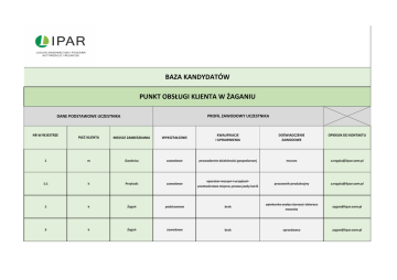 PUNKT OBSŁUGI KLIENTA W ŻAGANIU BAZA KANDYDATÓW