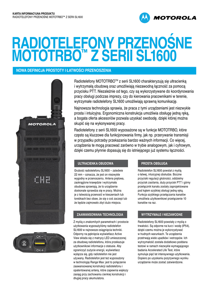 RADIOTELEFONY PRZENOŚNE MOTOTRBO™ Z SERII SL1600