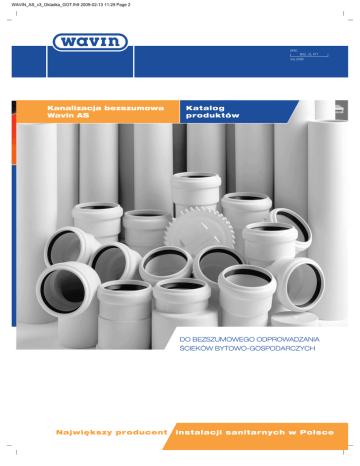 WAVIN_AS_v3_Okladka_GOT.fh9 2009-02-13 11:29 Page 2 EPIC B52, J3, X71 luty 2009 Kanalizacja bezszumowa Wavin AS Katalog produktów DO BEZSZUMOWEGO ODPROWADZANIA ŚCIEKÓW BYTOWO-GOSPODARCZYCH Największy producent instalacji sanitarnych w Polsce 17-5_WAVIN_AS_Wnetrz_10II09.fh9 2009-02-13 11:54 Page 2 Kanalizacja bezszumowa Wavin AS Wstęp/Informacje techniczne Wstęp Wavin AS to kompletny system, w skład którego wchodzą rury oraz kach każdego typu, przy odwadnianiu mostów, dachów oraz w wie- kształtki w zakresie średnic DN 56, 70, 100, 125, 150 oraz 200 lu innych dziedzinach. (w kolorze jasnoszarym – RAL 7035). System Wavin AS posiada aprobatę techniczną AT/99-02-0670-01 System doskonale nadaje się do instalacji kanalizacyjnych w budyn- wydaną przez COBRTI INSTAL. Informacje techniczne Materiał Wavin AS wykonany jest z astolanu – wzmocnionego minerałami two- Wavin AS posiada korzystne właściwości hydrauliczne. Powierzchnie rzywa sztucznego na bazie polipropylenu o wytrzymałości, jakiej nie wewnętrzne rur nie są porowate, lecz całkowicie gładkie. Sprzyja to uzyskał dotąd żaden inny materiał. Astolan charakteryzuje się wysokim optymalnemu przepływowi wody. Osadzanie się nalotu, które mogłoby stopniem izolacji akustycznej, dzięki czemu system pracuje nadzwyczaj prowadzić do zapychania rur, jest tutaj całkowicie wykluczone. cicho, zarówno w odniesieniu do szumów przenoszonych przez po- Szczególne właściwości tworzywa, dojrzała konstrukcja oraz nie spra- wietrze, jak i do szumów przenoszonych przez ciała stałe. Wynika to wiający żadnych trudności montaż gwarantują na długi czas bezpieczną, z nietypowych własności tworzywa, z jakiego rury są wykonane: dużego niezniszczalną i, dzięki temu, ekonomiczną eksploatację. ciężaru powierzchniowego oraz specjalnej struktury molekularnej. Dzięki tym właśnie cechom Wavin AS spełnia wszystkie stawiane przez Dzięki jego zastosowaniu rury charakteryzują się dużą odpornością na współczesny rynek wymogi odnośnie nowoczesnej instalacji kanaliza- działania mechaniczne. Ponadto są one odporne na działanie gorącej cyjnej. wody, a także na korozję. Rury, kształtki oraz elementy uszczelniające nadają się do odprowadzania ścieków chemicznie agresywnych w zakresie od pH 2 do pH 12 (w przypadku stosowania systemu Wavin AS do transportu środków chemicznie agresywnych zaleca się konsultację z firmą Wavin dotyczącą możliwości odprowadzania ścieków zawierających określone związki chemiczne). Pakowanie, transport i magazynowanie Rury i kształtki Wavin AS pakowane są w wygodny dla klienta spo- powinny w czasie transportu leżeć możliwie na całej swej długości. sób. Opakowanie gwarantuje optymalne zabezpieczenie podczas Należy unikać ich wyginania. Niewskazane jest także nagłe obciążanie transportu i ułatwia magazynowanie. Rury pakowane są standardowo zarówno rur, jak i pozostałych elementów instalacji. Kształtki dostar- na palety, w zależności od średnicy od 20 do 38 sztuk. Z uwagi na czane są natomiast w opakowaniach foliowych. jednakową długość wszystkich rur bezkielichowych (3 m) stosowany Uwaga: Elementów uszczelniających nie wolno składować na wolnym jest jeden rodzaj palet, co pozwala na lepsze gospodarowanie prze- powietrzu dłużej niż 2 lata. strzenią magazynową. Jeśli rury nie są oryginalnie zapakowane, Własności fizyczne Porównanie stopnia tłumienia ŻELIWO 40 dB ŻELIWO 34 dB szumów przez astolan oraz żeliwo ASTOLAN WAVIN AS 28 dB ASTOLAN WAVIN AS 25 dB Gęstość: 1,9 g/cm³ (DIN 53479) Wydłużenie przy zerwaniu: 29% Wytrzymałość na rozciąganie: 13 N/mm² Moduł E: 3800 N/mm² Współczynnik rozszerzalności cieplnej: 0,09 mm/Km Stopień ognioodporności: DIN 4102, B2 Uwaga: Przedstawione wartości zostały obliczone dla powierzchni absorbującej szumy odpowiadającej wielkości 10 m². Obejma rury bez wkładki (uszczelki) 2 TELEFON 061 891 10 00 FAX 061 891 10 11 Obejma rury z wkładką (uszczelką) INFOLINIA 0800 161 555 E-MAIL [email protected] 17-5_WAVIN_AS_Wnetrz_10II09.fh9 2009-02-13 11:54 Page 3 Kanalizacja bezszumowa Wavin AS Montaż Montaż Cięcie rur Rury można przycinać za pomocą powszechnie stosowanych przecinaków. Przy obróbce rur należy wykonywać cięcia pod kątem 90° do osi rury. Należy usunąć naroża, nierówności oraz krawędzie skrawające. Połączenia rur Połączenie nasadowe Wavin AS Mufa nasadowa stanowi połączenie pomiędzy dwoma rurami oraz pomiędzy rurą a kształtką. Jest ona skonstruowana w taki sposób, że uwzględnia kompensację wydłużeń (nie ma potrzeby uwzględniania zmiany długości rur). Aby połączyć rury za pomocą mufy, należy: oczyścić bosy koniec rury, sprawdzić ułożenie uszczelki wargowej w mufie; w razie potrzeby oczyścić mufę i uszczelkę, nasunąć uszczelkę manszetową na bosy koniec rury, Uwaga: Manszetę nakładać tylko na bosy koniec rury, nigdy na bosy koniec kształtek. nanieść obficie środek poślizgowy* na wewnętrzną stronę mufy, nanieść równomiernie cienką warstwę środka poślizgowego na uszczelkę manszetową, nasunąć mufę do oporu** i skontrolować właściwe ułożenie manszety, nanieść środek poślizgowy na przeciwległą uszczelkę wargową. * nie stosować olejów i smarów! kształtkami nie wymagają uwzględnienia zmian długości, dlatego ** głębokość nasadzenia rury z manszetą w mufie – patrz: rysunek i tabela poniżej L t2 t1 t poszczególne elementy można całkowicie do siebie dosunąć. W celu wykonania połączenia nasadowego należy postępować t1 [mm] t2 [mm] w następujący sposób: DN L [mm] t [mm] 56 126 49 5 15 70 119 48 6 16 100 124 48 6 16 125 132 63 6 16 oczyścić bosy koniec rury, 150 144 63 6 16 nanieść równomiernie cienką warstwę środka poślizgowego na sprawdzić ułożenie uszczelki wargowej; w razie potrzeby oczyścić kształtkę i uszczelkę, uszczelkę, Pozos