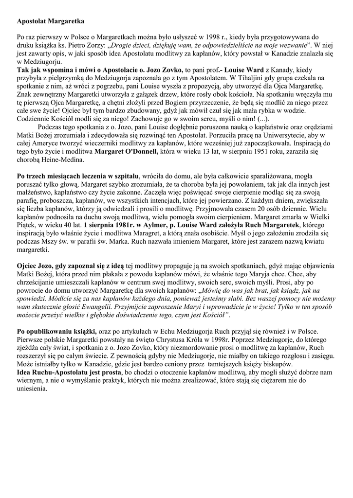 Istota Margaretki - Echo Maryi Królowej Pokoju