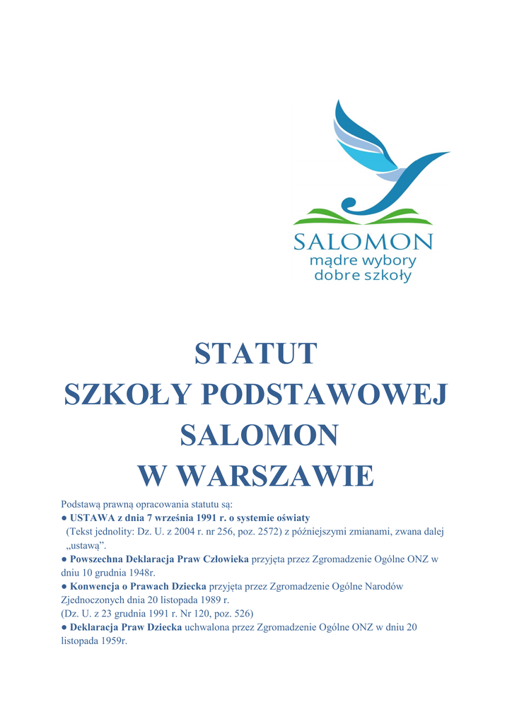 STATUT SZKOŁY PODSTAWOWEJ SALOMON W WARSZAWIE