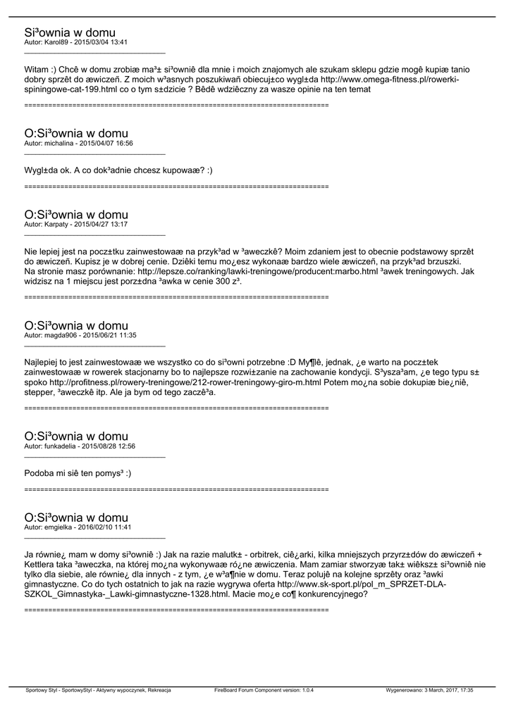 Si³ownia w domu Autor: Karol89 - 2015/03/04 13:41 _____________________________________ Witam :) Chcê w domu zrobiæ ma³± si³owniê dla mnie i moich znajomych ale szukam sklepu gdzie mogê kupiæ tanio dobry sprzêt do æwiczeñ. Z moich w³asnych poszukiwañ obiecuj±co wygl±da http://www.omega-fitness.pl/rowerkispiningowe-cat-199.html co o tym s±dzicie ? Bêdê wdziêczny za wasze opinie na ten temat ============================================================================ O:Si³ownia w domu Autor: michalina - 2015/04/07 16:56 _____________________________________ Wygl±da ok. A co dok³adnie chcesz kupowaæ? :) ============================================================================ O:Si³ownia w domu Autor: Karpaty - 2015/04/27 13:17 _____________________________________ Nie lepiej jest na pocz±tku zainwestowaæ na przyk³ad w ³aweczkê? Moim zdaniem jest to obecnie podstawowy sprzêt do æwiczeñ. Kupisz je w dobrej cenie. Dziêki temu mo¿esz wykonaæ bardzo wiele æwiczeñ, na przyk³ad brzuszki. Na stronie masz porównanie: http://lepsze.co/ranking/lawki-treningowe/producent:marbo.html ³awek treningowych. Jak widzisz na 1 miejscu jest porz±dna ³awka w cenie 300 z³. ============================================================================ O:Si³ownia w domu Autor: magda906 - 2015/06/21 11:35 _____________________________________ Najlepiej to jest zainwestowaæ we wszystko co do si³owni potrzebne :D My¶lê, jednak, ¿e warto na pocz±tek zainwestowaæ w rowerek stacjonarny bo to najlepsze rozwi±zanie na zachowanie kondycji. S³ysza³am, ¿e tego typu s± spoko http://profitness.pl/rowery-treningowe/212-rower-treningowy-giro-m.html Potem mo¿na sobie dokupiæ bie¿niê, stepper, ³aweczkê itp. Ale ja bym od tego zaczê³a. ============================================================================ O:Si³ownia w domu Autor: funkadelia - 2015/08/28 12:56 _____________________________________ Podoba mi siê ten pomys³ :) ============================================================================ O:Si³ownia w domu Autor: emgielka - 2016/02/10 11:41 _____________________________________ Ja równie¿ mam w domy si³owniê :) Jak na razie malutk± - orbitrek, ciê¿arki, kilka mniejszych przyrz±dów do æwiczeñ + Kettlera taka ³aweczka, na której mo¿na wykonywaæ ró¿ne æwiczenia. Mam zamiar stworzyæ tak± wiêksz± si³owniê nie tylko dla siebie, ale równie¿ dla innych - z tym, ¿e w³a¶nie w domu. Teraz polujê na kolejne sprzêty oraz ³awki gimnastyczne. Co do tych ostatnich to jak na razie wygrywa oferta http://www.sk-sport.pl/pol_m_SPRZET-DLASZKOL_Gimnastyka-_Lawki-gimnastyczne-1328.html. Macie mo¿e co¶ konkurencyjnego? ============================================================================ Sportowy Styl - SportowyStyl - Aktywny wypoczynek, Rekreacja FireBoard Forum Component version: 1.0.4 Wygenerowano: 3 March, 2017, 17:35