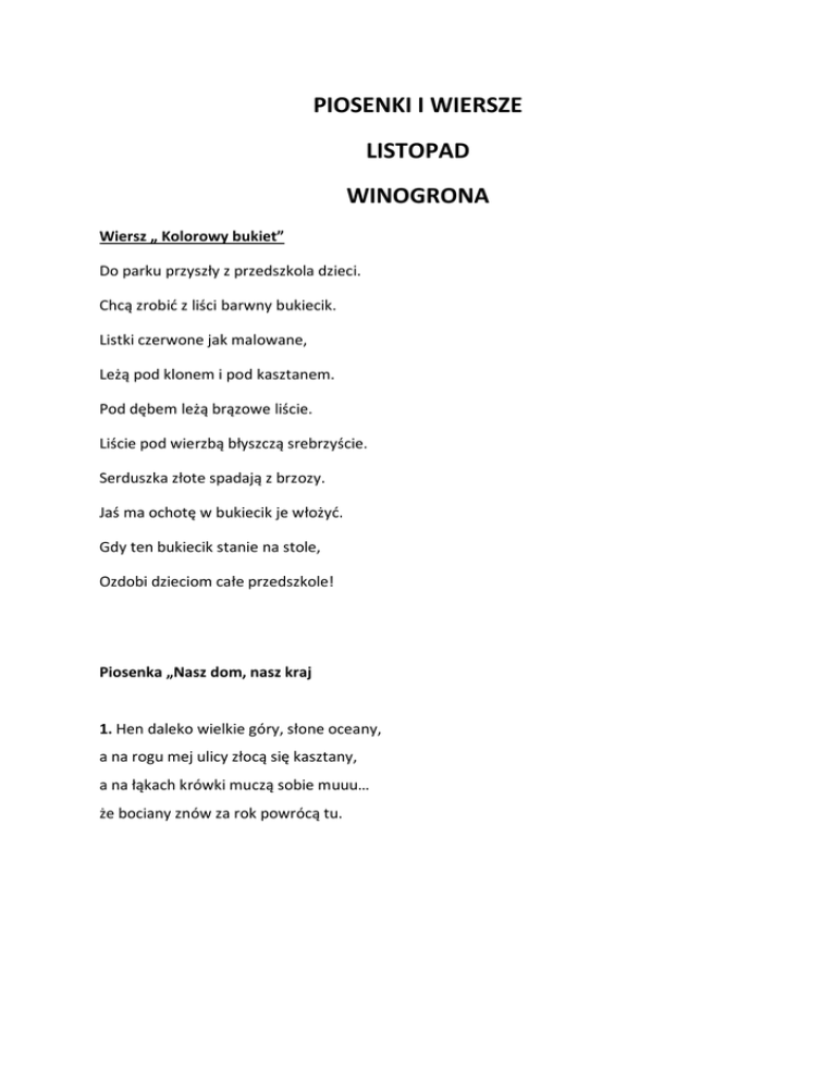 PIOSENKI I WIERSZE LISTOPAD WINOGRONA