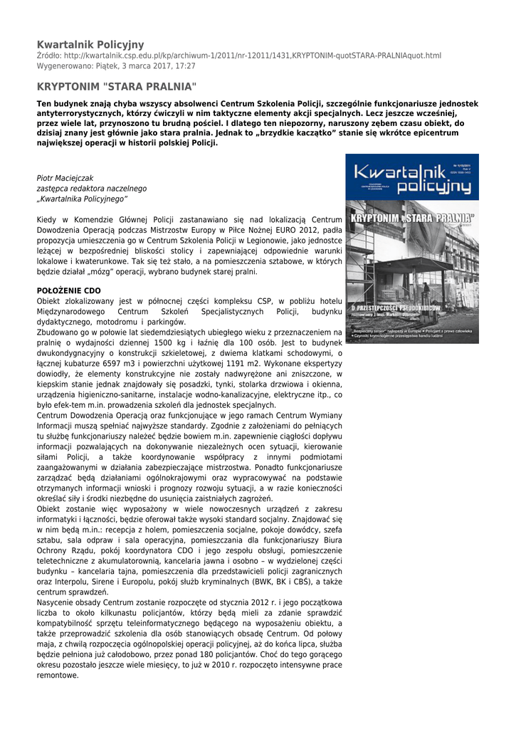 Kwartalnik Policyjny KRYPTONIM "STARA PRALNIA"