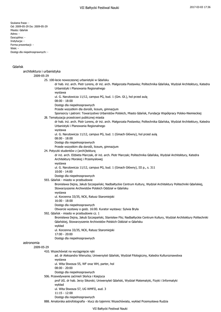 29 maja (piątek) - Bałtycki Festiwal Nauki
