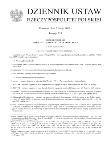 w sprawie ewidencji miejscowości, ulic i adresów Na podstawie art. 47b ust. 5 ustawy z dnia 17 maja 1989 r. – Prawo geodezyjne i kartograficzne (Dz. U. z 2010 r. Nr 193,