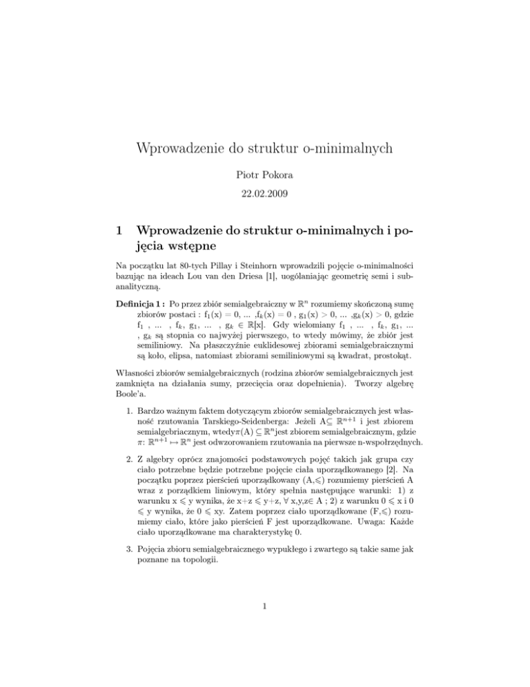 Wprowadzenie do struktur o-minimalnych i pojęcia wstępne