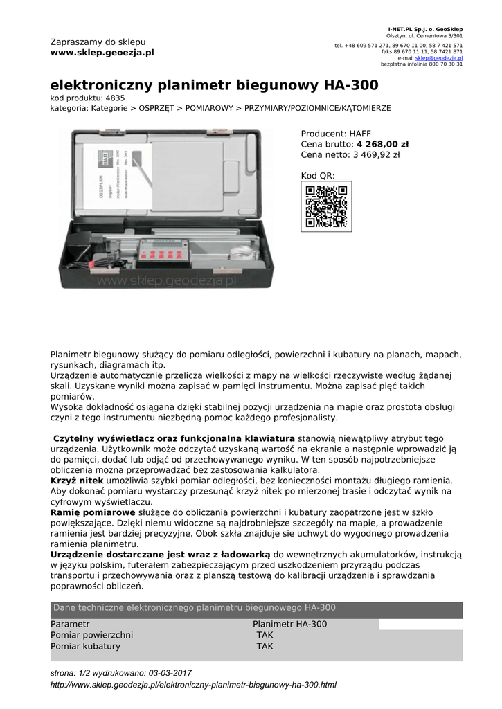 elektroniczny planimetr biegunowy HA-300
