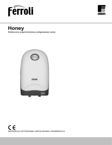 Honey Elektryczny pojemnościowy podgrzewacz wody INSTRUKCJA UŻYTKOWANIA, INSTALOWANIA I KONSERWACJI Honey Szanowny Kliencie! Dziękujemy za wybranie elektrycznego podgrzewacza wody Honey firmy Ferroli o nowoczesnym wyglądzie, wykonanego z wykorzystaniem najnowszej technologii, o wysokiej niezawodności i jakości konstrukcji. Prosimy przeczytać uważnie niniejszą instrukcję i starannie ją przechowywać w celu późniejszego wykorzystania. Spis treści Wstęp .......................................................................................................................................................................3 Widok ogólny i główne części składowe ..................................................................................................................4 Dane techniczne ......................................................................................................................................................4 Instalacja ..................................................................................................................................................................5 Instrukcja obsługi .....................................................................................................................................................7 Ostrzeżenia związane z bezpieczeństwem .............................................................................................................7 Konserwacja ............................................................................................................................................................8 Wykrywanie i usuwanie usterek ..............................................................................................................................8 Schemat połączeń ...................................................................................................................................................9 Wykaz zawartości opakowania ................................................................................................................................9 2 Honey Wstęp Honey to wysokiej sprawności podgrzewacz do produkcji ciepłej wody z zasilaniem elektrycznym, regulowany przez nowoczesny system ustawiania temperatury. Dzięki zintegrowanej technologii izolacji POLY wyrób jest wyposażony w super grubą warstwę izolacji, która skutecznie zabezpiecza przed stratami ciepła przez obudowę i zapewnia oszczędność energii. Podgrzewacz posiada system bezpieczeństwa, obejmujący zabezpieczenie przed przegrzaniem, zabezpieczenie przed nadmiernym ciśnieniem i automatyczne wyłączenie odpowiednio do żądanej temperatury. Wyrób został wykonany na linii produkcyjnej sterowanej w pełni komputerowo: powierzchnia zbiornika wewnętrznego jest pokryta specjalnie opracowaną powłoką z proszku silikonowego z wykorzystaniem o technologii elektrostatycznej. Proces wypalania w temperaturze 850 C zapewnia doskonałe zabezpieczenie zbiornika wewnętrznego przed uderzeniami i korozją. Magnezowa anoda o bardzo dużych wymiarach zapewnia również długą trwałość wyrobu. Użytkownik musi tylko ustawić żądaną temperaturę. System ustawiania temperatury zapewni optymalne działanie w czasie. 3 3 Honey Widok ogólny i główne części składowe 1. 2. 3. 4. 5. 6. Termometr Kabel zasilający Kontrolka świetlna Zał/Wył Przycisk Zał/Wył Pokrętło regulacyjne temperatury Obudowa zewnętrzna 7. 8. 9. 10. 11. 12. Zbiornik wewnętrzny Warstwa izolacyjna Grzałka Anoda magnezowa Wlot zimnej wody Wylot ciepłej wody Rys. 1 Dane techniczne Tabela 1 Model Dane Nominalna pojemność wody (litry) 12 Moc znamionowa grzałki (kW) 1,5 Zasilanie 230VAC/50Hz Maksymalne ciśnienie robocze (MPa) o Zakres nastawy temperatury ( C) 4 HN12 0,85 Temp. wody wlotowej ~75 Wymiary gabarytowe (mm) 295 x 262 x 495 Instalacja Pionowa ścienna Honey Instalacja Etap 1: Mocowanie podgrzewacza 1. 2. 3. Za pomocą wiertarki elektrycznej wykonać w ścianie dwa otwory Ø8mm. Odległość pomiędzy dwoma otworami musi wynosić 80mm (rysunek 2). W przygotowanych otworach umieścić kołki rozporowe i zamocować haki śrubami ST5.5x45. W przodku montażu na płycie drewnianej przymocować haki do drewna śrubami ST4.2x18. Podnieść podgrzewacz, zawiesić go i zamocować na haku. Uwaga:podgrzewacz zaleca się zainstalować w miejscu, w którym znajduje się instalacja odpływowa. Rys. 2 Etap 2: Podłączenia wodne 1. 2. 3. 4. Przykręcić zawór bezpieczeństwa na wlocie zimnej wody (niebieski). W przypadku wielopunktowego dostarczania wody podłączyć odpowiednio wlot wody i wylot do właściwie zarezerwowanego miejsca (Rysunek 3). W celu napełnienia podgrzewacza, po podłączeniu wody, otworzyć dowolny zawór ciepłej wody, a następnie otworzyć główny zawór wody. Po kilku minutach woda zacznie wypływać z zaworu ciepłej wody, co oznacza, że zbiornik jest napełniony. Zamknąć zawór ciepłej wody. Sprawdzić wszystkie połączenia, w celu upewnienia się, czy nie ma przecieków. 5 5 Honey Rys. 3 Uwaga: 1. Rury doprowadzająca i odprowadzająca wodę powinny być wykonane z materiału wytrzymującego ciśnienie powyżej 0,85 MPa i temperaturę powyżej 100C. Zabrania się stosować rury, których wytrzymałość na ciśnienie i temperaturę jest niższa niż podano powyżej. 2. Wlot i wylot wody są wyraźnie rozróżnione. Kolor niebieski oznacza wlot wody zimnej, natomiast kolor czerwony oznacza wylot wody ciepłej. Etap 3: Podłączenie zasilania elektrycznego 1. Przed podłączeniem elektrycznym sprawdzić, czy z sieci dostarczane jest napięcie 230 V prądu przemiennego (AC) o częstotliwości 50 Hz. 2. Wyrób jest dostarczany wraz z kablem podłączonym już do elementów elektrycznych. Do podłączenia do sieci elektrycznej zastosować odpowiednią wtyczkę lub wykonać podłączenie bezpośrednio za pomocą przewodu. Usilnie zaleca się zainstalowanie zewnętrznego wyłączn