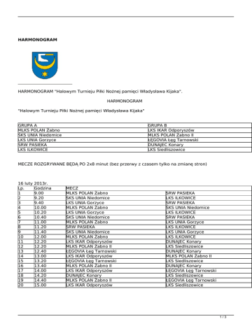 HARMONOGRAM HARMONOGRAM "Halowym Turnieju Piłki