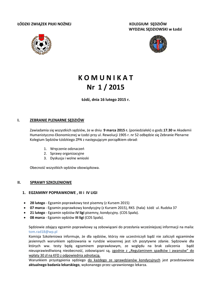 komunikat 1.2014 - Łódzki Związek Piłki Nożnej