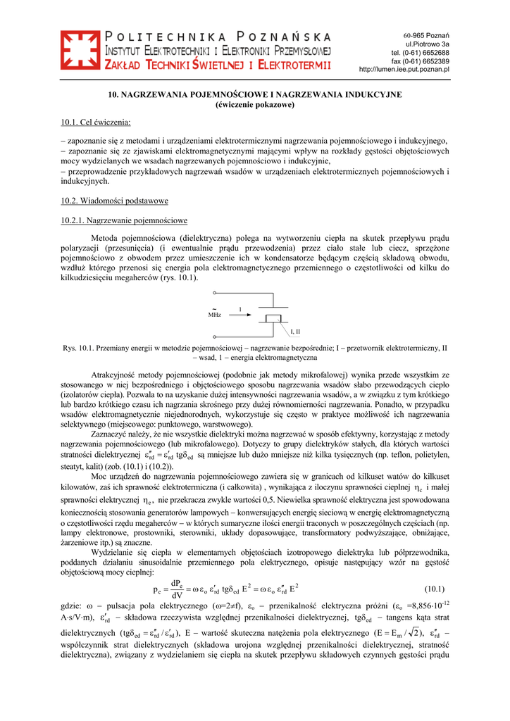 10. NAGRZEWANIA POJEMNOŚCIOWE I NAGRZEWANIA