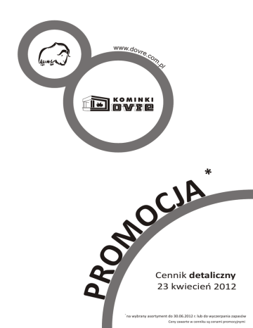www.dov PRO M pl re. co m . A J C O * Cennik detaliczny 23 kwiecień 2012 * na wybrany asortyment do 30.06.2012 r. lub do wyczerpania zapasów Ceny zawarte w cenniku są cenami promocyjnymi P IE C Y K I D O V R E - S E R IA A S T R O Model Op is Astro lin e 1 D rzw i z szyb ą 2 6 ", syste m d o p a la n ia sp a lin , p o p ie ln ik, p a n e le b o czn e w ko lo rze Bla ck p ie cyka Astro lin e 1 D rzw i z szyb ą 2 6 ", syste m d o p a la n ia sp a lin , p o p ie ln ik, p a n e le b o czn e w ko lo rze Ste e le r sta li Astro lin e 1 D rzw i z szyb ą 2 6 ", syste m d o p a la n ia sp a lin , p o p ie ln ik, p a n e le b o czn e z Moc Moc nom . m ax C e n a n e tto C e n a b ru tto 9 kW 1 1 kW 4 6 2 2 ,9 5 zł 5 6 8 6 zł 9 kW 1 1 kW 4 9 0 1 ,6 4 zł 6 0 2 9 zł 9 kW 1 1 kW 5 6 5 5 ,7 4 zł 6 9 5 7 zł Sca n d ic ka m ie n ia Astro 2 D rzw i z szyb ą 2 2 ", syste m d o p a la n ia sp a lin , p o p ie ln ik, w kła d ki ve rm iku lito w e 7 kW 9 kW 3 2 5 4 ,1 0 zł 4 0 0 3 zł Astro 2 /L D rzw i z szyb ą 2 2 ", syste m d o p a la n ia sp a lin , p o p ie ln ik, w kła d ki ve rm iku lito w e , 1 0 0 % p o w ie trze z ze w n ą trz, czte ry n ó żki 7 kW 9 kW 3 3 6 0 ,6 6 zł 4 1 3 4 zł 7 kW 9 kW 4 0 9 8 ,3 6 zł 5 0 4 1 zł 7 kW 9 kW 4 0 9 8 ,3 6 zł 5 0 4 1 zł 8 kW 1 0 kW 5 1 8 0 ,3 3 zł 6 3 7 2 zł 8 kW 1 0 kW 5 3 3 6 ,0 7 zł 6 5 6 3 zł 8 kW 1 0 kW 4 9 5 9 ,0 2 zł 6 1 0 0 zł 8 kW 1 0 kW 5 1 4 7 ,5 4 zł 6 3 3 1 zł Astro 2 /P Astro 2 /W B Astro 3 C B/P Astro 3 D rzw i z szyb ą 2 2 ", syste m d o p a la n ia sp a lin , p o p ie ln ik, w kła d ki ve rm iku lito w e , 1 0 0 % p o w ie trze z ze w n ą trz, p ie d e sta ł D rzw i z szyb ą 2 2 ", syste m d o p a la n ia sp a lin , p o p ie ln ik, w kła d ki ve rm iku lito w e , 1 0 0 % p o w ie trze z ze w n ą trz, za so b n ik n a d re w n o D rzw i z szyb ą p a n o ra m iczn ą , d w ie b o czn e szyb ki, syste m d o p a la n ia sp a lin , p o p ie ln ik, w kła d ki ve rm iku lito w e , 1 0 0 % p o w ie trze z ze w n ą trz D rzw i z szyb ą p a n o ra m iczn ą , d w ie b o czn e szyb ki, syste m d o p a la n ia sp a lin , C B/W B p o p ie ln ik, w kła d ki ve rm iku lito w e , 1 0 0 % p o w ie trze z ze w n ą trz, za so b n ik n a d re w n o Astro 4 D rzw i z szyb ą p a n o ra m iczn ą , d w ie b o czn e szyb ki, syste m d o p a la n ia sp a lin , C B/P Astro 4 C B/W B p o p ie ln ik, w kła d ki ve rm iku lito w e , 1 0 0 % p o w ie trze z ze w n ą trz D rzw i z szyb ą p a n o ra m iczn ą , d w ie b o czn e szyb ki, syste m d o p a la n ia sp a lin , p o p ie ln ik, w kła d ki ve rm iku lito w e , 1 0 0 % p o w ie trze z ze w n ą trz, za so b n ik n a d re w n o P IE C Y K I D O V R E V IN T A G E Model Vin ta g e 3 0 Vin ta g e 3 5 Vin ta g e 5 0 A J C O M RO Op is D rzw i z n o w o cze sn ą szyb ą , syste m d o p a la n ia sp a lin , p o p ie ln ik, w kła d ki ve rm iku lito w e , 1 0 0 % p o w ie trze z ze w n ą trz, czte ry n ó żki D rzw i z n o w o cze sn ą szyb ą , syste m d o p a la n ia sp a lin , p o p ie ln ik, w kła d ki ve rm iku lito w e , 1 0 0 % p o w ie trze z ze w n ą trz, czte ry n ó żki P D rzw i z n o w o cze sn ą szyb ą , syste m d o p a la n ia sp a lin , p o p ie ln ik, w kła d ki ve rm iku lito w e , 1 0 0 % p o w ie trze z ze w n ą trz, czte ry n ó żki Moc nom . Moc m ax 5 kW 7 kW 3 5 1 2 ,2 0 zł 4 3 2 0 zł 7 kW 9 kW 4 0 9 7 ,5 6 zł 5 0 4 0 zł 4 6 1 7 ,8 9 zł 5 6 8 0 zł 9 kW 1 1 kW P O D S T A W Y D O P IE C Y K Ó W V IN T A G E N a zw a C e n a n e tto C e n a n e tto Op is C e n a b ru tto C e n a b ru tto TBVIN 3 0 Po d sta w a d o V in ta g e 3 0 - sto lik 8 1 3 ,0 1 zł 1 0 0 0 zł W BVIN 3 0 Po d sta w a d o V in ta g e 3 0 - za so b n ik n a d re w n o 9 9 1 ,8 7 zł 1 2 2 0 zł C R VIN 3 0 Po d sta w a d o V in ta g e 3 0 - ko łyska 1 0 5 6 ,9 1 zł 1 3 0 0 zł TBVIN 3 5 Po d sta w a d o V in ta g e 3 5 - sto lik 8 7 8 ,0 5 zł 1 0 8 0 zł W BVIN 3 5 Po d sta w a d o V in ta g e 3 5 - za so b n ik n a d re w n o 1 0 9 7 ,5 6 zł 1 3 5 0 zł C R VIN 3 5 Po d sta w a d o V in ta g e 3 5 - ko łyska 1 1 7 8 ,8 6 zł 1 4 5 0 zł TBVIN 5 0 Po d sta w a d o V in ta g e 5 0 - sto lik 9 1 0 ,5 7 zł 1 1 2 0 zł W BVIN 5 0 Po d sta w a d o V in ta g e 5 0 - za so b n ik n a d re w n o 1 2 7 6 ,4 2 zł 1 5 7 0 zł P IE C Y K I D O V R E V IN T A G E E M A L IO W A N E Model Vin ta g e 3 0 Vin ta g e 3 5 Vin ta g e 5 0 Op is A J C O M RO D rzw i z n o w o cze sn ą szyb ą , syste m d o p a la n ia sp a lin , p o p ie ln ik, w kła d ki ve rm iku lito w e , 1 0 0 % p o w ie trze z ze w n ą trz, czte ry n ó żki D rzw i z n o w o cze sn ą szyb ą , syste m d o p a la n ia sp a lin , p o p ie ln ik, w kła d ki ve rm iku lito w e , 1 0 0 % p o w ie trze z ze w n ą trz, czte ry n ó żki D rzw i z n o w o cze sn ą szyb ą , syste m d o p a la n ia sp a lin , p o p ie ln ik, w kła d ki ve rm iku lito w e , 1 0 0 % p o w ie trze z ze w n ą trz, czte ry n ó żki P P O D S T A W Y D O P IE C Y K Ó W V IN T A G E E M A L IO W A N Y C H N a zw a Op is TBVIN 3 0 E Po d sta w a d o V in ta g e 3 0 - sto lik Moc Moc nom . m ax 5 kW 7 kW 4 2 2 7 ,6 4 zł 5 2 0 0 zł 7 kW 9 kW 4 9 4 3 ,0 9 zł 6 0 8 0 zł 5 4 6 3 ,4 1 zł 6 7 2 0 zł 9 kW 1 1 kW C e n a n e tto C e n a n e tto C e n a b ru tto C e n a b ru tto 9 9 1 ,8 7 zł 1 2 2 0 zł W BVIN 3 0 E Po d sta w a d o V in ta g e 3 0 - za so b n ik n a d re w n o 1 1 7 8 ,8 6 zł 1 4 5 0 zł C R VIN 3 0 E Po d sta w a d o V in ta g e 3 0 - ko łyska 1 2 1 9 ,5 1 zł 1 5 0 0 zł TBVIN 3 5 E Po d sta w a d o V in ta g e 3 5 - sto lik 1 0 5 6 ,9 1 zł 1 3 0 0 zł W BVIN 3 5 E Po d sta w a d o V in ta g e 3 5 - za so b n ik n a d re w n o 1 3 0 0 ,8 1 zł 1 6 0 0 zł P IE C Y K I D O V R E Model 760 C B 7 6 0 GM Op is D rzw i z szyb ą 2 4 ", d o d a tko w e d rzw i d o ła d o w a n ia d re w n a z b o ku , p o p ie ln ik, syste m d o p a la n ia sp a lin D rzw i z szyb ą 2 4 ", d o d a tko w e d rzw i d o ła d o w a n 