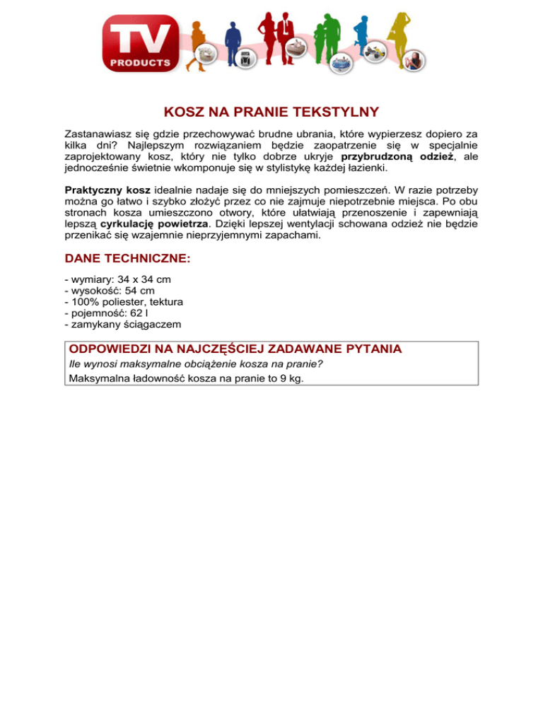 Pełny opis kosza tekstylnego na pranie