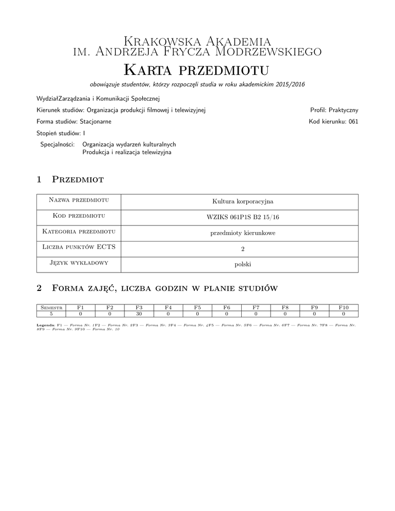 Karta przedmiotu - Krakowska Akademia