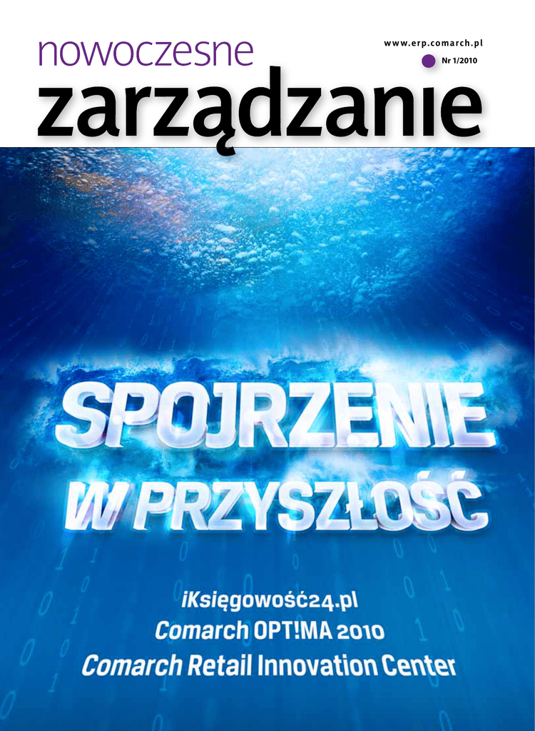w w w.e r p. comarch . p l Nr 1/2010 Rynek docenia sprawdzone strategie Napływające ze światowych rynków informacje zwiastują ożywienie gospodarcze. Comarch wychodzi z kryzysu gospodarczego o krok przed konkurencją. Sukces spółki spoczywa na solidnych filarach, jakimi są mądre zarządzanie i skuteczna strategia… O zakończeniu 2009 roku oraz prognozach na 2010 rok opowiada Prezes Comarch SA Janusz Filipiak. Zapraszamy na stronę 6. Sklep przyszłości – zwyczajnie niezwyczajne zakupy Standardowa oferta przestała być atrakcyjna, dlatego też firmy prześcigają się w pomysłach, nie tylko na przyciągnięcie nowych konsumentów, ale również wywołanie lojalności u już obecnych, a także zwiększenie wartości koszyka zakupowego w obu tych grupach. Jakie nowości pojawiły się w ostatnim czasie w branży handlu detalicznego? Jak będą wyglądać już wkrótce zakupy? Zapraszamy na stronę 40. Środowisko biznesowe Comarch OPT!MA Oferta Comarch to nie tylko aplikacje obsługujące podstawowe procesy zachodzące w firmie, ale i pomysły na biznes oraz cała gama rozwiązań dodatkowych, które kreują zupełnie nowe możliwości. Wybór oprogramowania to tak naprawdę wybór partnera w biznesie. O korzyściach z wyboru rozwiązań Comarch i nowych zintegrowanych aplikacjach przeczytają Państwo, począwszy od strony 12. Social media zmieniają biznes Social media stają się coraz częściej nośnikiem informacji, mających na celu zwiększanie świadomości marki wśród konsumentów. Firmy mogą powiadamiać internautów o ważnych wydarzeniach i relacjonować je, wspierać obsługę klienta, organizować konkursy i promocje, czy nawet rekrutować nowych pracowników. Jak wykorzystać to narzędzie w swoim biznesie? Odpowiedź znajdą Państwo na stronie 34. SPIS TREŚCI 3. Od redakcji 4. Aktualności z rynku 5. Spojrzenie w przyszłość 6. Rynek docenia sprawdzone strategie 8. Postaw na PR 10. Oprogramowanie Comarch na progu drugiej dekady XXI w. 12. Środowisko biznesowe Comarch OPT!MA 14. iFaktury24 – witaj w nowym wymiarze fakturowania 16. Outsourcing usług księgowych – iKsięgowość24 18. Nowe iMożliwości dla firm handlowych 20. Program Partnerski – nowoczesna platforma współpracy 22. Zintegrowana oferta w chmurach 24. Serwery x86 stworzone dla nowoczesnej firmy 25. KSN Sanel wdraża Comarch CDN XL 27. Comarch Mobile – nowoczesny biznes każdego dnia 28. Nowoczesne sposoby nauczania z Comarch CDN XL 30. Area Traders z systemem Comarch CDN XL 32. Business Intelligence – nieodłączny element nowoczesnego zarządzania 33. Comarch OPT!MA 2010 – przyjemność korzystania z nowoczesnych rozwiązań 34. Social media zmieniają biznes 36. Analiza ABC – poznaj wartość swoich produktów 40. Sklep przyszłości – zwyczajnie niezwyczajne zakupy od redakcji Nowoczesne Zarządzanie numer 1/2010 Redakcja Agnieszka Kozłowska Magdalena Grochala Korekta Magdalena Grochala Grafiki i skład Adam Dąbrowski Wydawca Comarch SA Al. Jana Pawła II 41g 31-864 Kraków tel.: 0 12 684 90 01 wew. 1 fax: 0 12 687 71 00 Kontakt dla Czytelników [email protected] www.erp.comarch.pl Nakład 1500 egz. Nowoczesne Zarządzanie jest wydawnictwem bezpłatnym dostępnym w subskrypcji. Artykuły publikowane w niniejszym wydawnictwie mogą być kopiowane i przedrukowywane za wiedzą i zgodą redakcji. Nazwy produktów i firm wymienione w niniejszym wydawnictwie są znakami handlowymi i nazwami towarowymi odpowiednich producentów. 3 Szanowni Państwo, Kiedy Juliusz Verne pisał swoje książki o lotach w kosmos, wszyscy widzieli w nim przede wszystkim sprawnego literata i człowieka o wybujałej wyobraźni, ale mało kto myślał wtedy – wizjoner. Ba! Pewnie niejeden popukał się znacząco palcem w czoło, słuchając wymyślonych przez niego historii. A przecież przyszedł 20 lipca 1969 roku i pierwszy spacer po powierzchni Srebrnego Globu. I choć do dziś część ludzkości święcie wierzy w to, iż lądowanie na Księżycu było tylko wielką mistyfikacją skrzętnie przygotowaną i przeprowadzoną w hollywoodzkich studiach filmowych, nikt nie może zaprzeczyć, że rację miał Verne, pisząc: Ileż to jest spraw, które jeszcze wczoraj budziły sprzeciw, a urzeczywistnił je dzień dzisiejszy! Odnosi się to również do biznesu. Kiedyś relacje z partnerami w interesach i klientami wymagały bezpośredniego spotkania, a narzędziami wspierającymi były co najwyżej kartka i długopis. Dziś niemal wszystko w tej sferze można zrobić wirtualnie. Prowadzenie sklepu, robienie zakupów, wystawianie faktur, dbanie o lojalność klienta i bezpieczeństwo firmy – tak naprawdę wystarczy do tego komputer i odpowiednie oprogramowanie. Zwykła wizyta w sklepie to już nie spotkanie ze sprzedawcą, tylko przygoda z nowoczesnymi technologiami, wśród których dominują lady prezentujące najnowsze produkty, interaktywne podłogi z ofertą sklepu czy też wirtualne lustra, które bez przymierzania pokazują klientowi, jak wyglądałby w ubraniach wrzuconych do koszyka. Brzmi jak odyseja kosmiczna? Nic bardziej mylnego – to już świat współczesnego biznesu. Prowadząc przedsiębiorstwo, trzeba nie tylko obserwować bacznie to, co dzieje się wokół, ale też spoglądać w przyszłość, która pewnego dnia niepostrzeżenie stanie się teraźniejszością. Żeby nie zostać w tyle, warto wybrać rozwiązania, które pozwalają być zawsze o krok przed innymi. W tym numerze „Nowoczesnego Zarządzania” przedstawiamy Państwu najnowsze produkty Comarch wspierające przedsiębiorców i wykorzystujące najbardziej zaawansowaną technologię. Mamy nadzieję, że wyjaśnienia naszych ekspertów przybliżą Państwu współczesne trendy i przekonają do podążania za nimi. Decyzja o zainwestowaniu w nowoczesne aplikacje to mały krok dla Państwa, ale wielki krok dla Państwa biznesu. Pomożemy go Państwu uczynić. Życzymy przyjemnej lektury Redakcja Nr 1/2010 Nowo