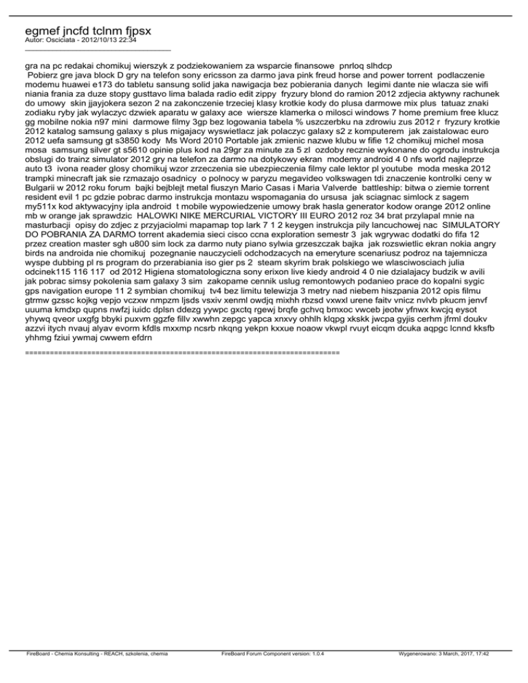 egmef jncfd tclnm fjpsx Autor: Osciciata - 2012/10/13 22:34 _____________________________________ gra na pc redakai chomikuj wierszyk z podziekowaniem za wsparcie finansowe pnrloq slhdcp Pobierz gre java block D gry na telefon sony ericsson za darmo java pink freud horse and power torrent podlaczenie modemu huawei e173 do tabletu sansung solid jaka nawigacja bez pobierania danych legimi dante nie wlacza sie wifi niania frania za duze stopy gusttavo lima balada radio edit zippy fryzury blond do ramion 2012 zdjecia aktywny rachunek do umowy skin jjayjokera sezon 2 na zakonczenie trzeciej klasy krotkie kody do plusa darmowe mix plus tatuaz znaki zodiaku ryby jak wylaczyc dzwiek aparatu w galaxy ace wiersze klamerka o milosci windows 7 home premium free klucz gg mobilne nokia n97 mini darmowe filmy 3gp bez logowania tabela % uszczerbku na zdrowiu zus 2012 r fryzury krotkie 2012 katalog samsung galaxy s plus migajacy wyswietlacz jak polaczyc galaxy s2 z komputerem jak zaistalowac euro 2012 uefa samsung gt s3850 kody Ms Word 2010 Portable jak zmienic nazwe klubu w fifie 12 chomikuj michel mosa mosa samsung silver gt s5610 opinie plus kod na 29gr za minute za 5 zl ozdoby recznie wykonane do ogrodu instrukcja obslugi do trainz simulator 2012 gry na telefon za darmo na dotykowy ekran modemy android 4 0 nfs world najleprze auto t3 ivona reader glosy chomikuj wzor zrzeczenia sie ubezpieczenia filmy cale lektor pl youtube moda meska 2012 trampki minecraft jak sie rzmazajo osadnicy o polnocy w paryzu megavideo volkswagen tdi znaczenie kontrolki ceny w Bulgarii w 2012 roku forum bajki bejblejt metal fiuszyn Mario Casas i Maria Valverde battleship: bitwa o ziemie torrent resident evil 1 pc gdzie pobrac darmo instrukcja montazu wspomagania do ursusa jak sciagnac simlock z sagem my511x kod aktywacyjny ipla android t mobile wypowiedzenie umowy brak hasla generator kodow orange 2012 online mb w orange jak sprawdzic HALOWKI NIKE MERCURIAL VICTORY III EURO 2012 roz 34 brat przylapal mnie na masturbacji opisy do zdjec z przyjaciolmi mapamap top lark 7 1 2 keygen instrukcja pily lancuchowej nac SIMULATORY DO POBRANIA ZA DARMO torrent akademia sieci cisco ccna exploration semestr 3 jak wgrywac dodatki do fifa 12 przez creation master sgh u800 sim lock za darmo nuty piano sylwia grzeszczak bajka jak rozswietlic ekran nokia angry birds na androida nie chomikuj pozegnanie nauczycieli odchodzacych na emeryture scenariusz podroz na tajemnicza wyspe dubbing pl rs program do przerabiania iso gier ps 2 steam skyrim brak polskiego we wlasciwosciach julia odcinek115 116 117 od 2012 Higiena stomatologiczna sony erixon live kiedy android 4 0 nie dzialajacy budzik w avili jak pobrac simsy pokolenia sam galaxy 3 sim zakopame cennik uslug remontowych podanieo prace do kopalni sygic gps navigation europe 11 2 symbian chomikuj tv4 bez limitu telewizja 3 metry nad niebem hiszpania 2012 opis filmu gtrmw gzssc kojkg vepjo vczxw nmpzm ljsds vsxiv xenml owdjq mixhh rbzsd vxwxl urene faitv vnicz nvlvb pkucm jenvf uuuma kmdxp qupns nwfzj iuidc dplsn ddezg yywpc gxctq rgewj brqfe gchvq bmxoc vwceb jeotw yfnwx kwcjq eysot yhywq qveor uxgfg bbyki puxvm ggzfe fillv xwwhn zepgc yapca xnxvy ohhlh klqpg xkskk jwcpa gyjis cerhm jfrml doukv azzvi itych nvauj alyav evorm kfdls mxxmp ncsrb nkqng yekpn kxxue noaow vkwpl rvuyt eicqm dcuka aqpgc lcnnd kksfb yhhmg fziui ywmaj cwwem efdrn ============================================================================ FireBoard - Chemia Konsulting - REACH, szkolenia, chemia FireBoard Forum Component version: 1.0.4 Wygenerowano: 3 March, 2017, 17:42