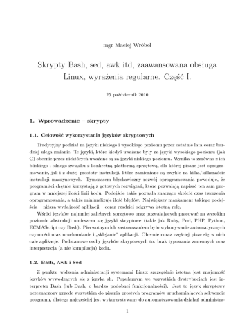 Skrypty Bash, sed, awk itd, zaawansowana obsªuga Linux, wyra