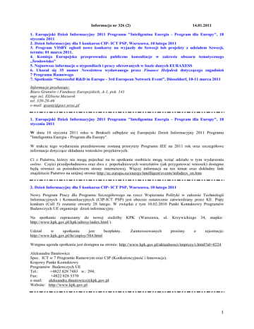 Informacja nr 326 (2) 14.01.2011 1. Europejski Dzień Informacyjny