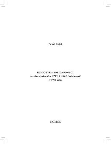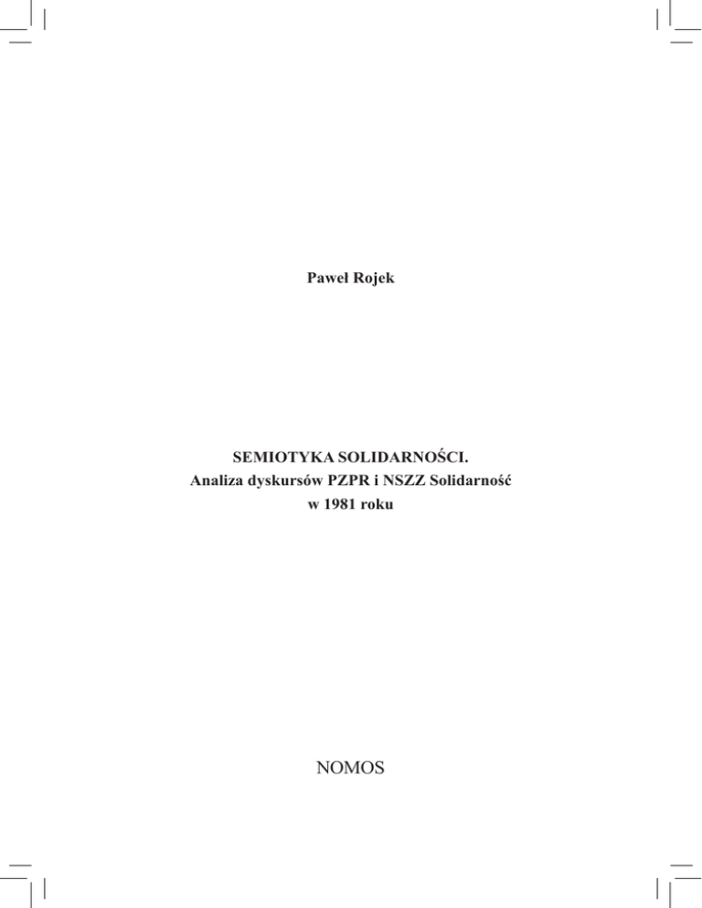 Paweł Rojek semiotyka Solidarności. Analiza dyskursów PZPR i NSZZ Solidarność w 1981 roku NOMOS © 2009 Copyright by Paweł Rojek & Zakład Wydawniczy »NOMOS« Wszelkie prawa zastrzeżone. Książka ani żadna jej część nie może być przedrukowywana ani w jakikolwiek inny sposób reprodukowana czy powielana mechanicznie, fotooptycznie, zapisywana elektronicznie lub magnetycznie w środkach publicznego przekazu bez pisemnej zgody wydawcy. Recenzje: dr hab. Wojciech Pawlik prof. dr hab. Piotr Sztompka Książka dofinansowana przez Ministra Nauki i Szkolnictwa Wyższego oraz Wydział Filozoficzny Uniwersytetu Jagiellońskiego Na oładce wykorzystano ilustrację z dzieła Antona Josepha Binterima Die vorzüglichsten Denkwürdigkeiten der Christ-Katolischen Kirche, t. VII, cz. 2, Mainz 1833, s. 337. Redakcja wydawnicza: Krzysztof Malczewski Redakcja techniczna: Pracownia Edytorska MP II korekta: Kasper Świerzowski Projekt okładki: Maria Joanna Tokarska Grafika na okładce: Ewa Rojek ISBN 978-83-60490-002-0 KRAKÓW 2009 Zakład Wydawniczy »NOMOS« 31-208 Kraków, ul. Kluczborska 25/3u; tel./fax 012 626 19 21 e-mail: [email protected]; www.nomos.pl Spis treści PODZIĘKOWANIA . . . . . . . . . . . . . . . . . . . . . . . . . . . . . . . . . . . . . . . . . 9 WSTĘP . . . . . . . . . . . . . . . . . . . . . . . . . . . . . . . . . . . . . . . . . . . . . . . . . . . . 11 1. ELEMENTY SEMIOTYKI KULTURY . . . . . . . . . . . . . . . . . . . . . . . . . 23 Kultura jako system znakowy . . . . . . . . . . . . . . . . . . . . . . . . . 25 Systemy binarne i ternarne . . . . . . . . . . . . . . . . . . . . . . . . . . . . 27 Przekodowanie wewnętrzne i przekodowanie zewnętrzne — 28; Wewnętrzny i zewnętrzny punkt widzenia — 31; Orientacja na wyrażenie i orientacja na treść — 34; Zestawienie: systemy binarne i ternarne — 42 Dynamika systemów binarnych i ternarnych . . . . . . . . 44 Dynamika systemów binarnych — 45; Dynamika systemów ternarnych — 48 Przykład zastosowania: semiotyka dziejów Rosji . . . . 49 Reformy Nikona: konflikt systemu binarnego i ternarnego — 50; Reformy Piotra I: nowoczesność jako antytradycja — 52 2. MODEL DYSKURSU KOMUNISTYCZNEGO . . . . . . . . . . . . . . . . . . . 55 Binarny charakter ideologii komunistycznej . . . . . . . . 56 Aprioryczna prawdziwość ideologii — 57; Aprioryczne dobro ideologii — 66; Monizm i dychotomizm ideologii — 67; Totalność ideologii — 69 Binarny charakter komunistycznej nowomowy . . . . . 70 Magiczność nowomowy — 71; Aksjologiczność nowomowy — 72; Arbitralność nowomowy — 78; Syntetyczność nowomowy — 79 3. Elementy socjologii realnego socjalizmu . . . . . . . . . 83 Dymorfizm w kulturze . . . . . . . . . . . . . . . . . . . . . . . . . . . . . . . . . 85 Sprzeczność w polityce . . . . . . . . . . . . . . . . . . . . . . . . . . . . . . . . 91 Sprzeczność w gospodarce . . . . . . . . . . . . . . . . . . . . . . . . . . . . . 101 4. DWA MODELE DYSKURSU SOLIDARNOŚCI . . . . . . . . . . . . . . . . . . 107 Spis treści Opozycja jako odzwierciedlenie systemu . . . . . . . . . . . . . 110 Treść ideologii Solidarności: identyczność i odwrócenie — 111; Moralny i poznawczy aprioryzm ideologii Solidarności — 118; Dychotomiczność ideologii Solidarności — 127; Monizm ideologii Solidarności — 129 Opozycja jako przekroczenie systemu . . . . . . . . . . . . . . . . . 133 Aposterioryzm „aideologii” Solidarności — 133; Pluralizm „aideologii” Solidarności — 143; Niedychotomiczność „aideologii” Solidarności — 146; Treść „aideologii” Solidarności — 157 5. DYSKURS PARTII . . . . . . . . . . . . . . . . . . . . . . . . . . . . . . . . . . . . . . . . . . . 167 Tożsamość partii . . . . . . . . . . . . . . . . . . . . . . . . . . . . . . . . . . . . . . . . 170 „Partia komunistów” — 170; „Partia polskich komunistów” — 172 Diagnoza kryzysu . . . . . . . . . . . . . . . . . . . . . . . . . . . . . . . . . . . . . . . 176 „Uzasadniony protest klasy robotniczej” — 177; „Dywersja ideologiczna” — 178 Sposób przezwyciężenia kryzysu . . . . . . . . . . . . . . . . . . . . . . . 180 „Linia socjalistycznej odnowy” — 180; „Linia porozumienia” — 186; „Linia walki” — 189 Tożsamość przeciwnika politycznego . . . . . . . . . . . . . . . . . 190 Podsumowanie . . . . . . . . . . . . . . . . . . . . . . . . . . . . . . . . . . . . . . . . . . . 192 6. DYSKURS SOLIDARNOŚCI . . . . . . . . . . . . . . . . . . . . . . . . . . . . . . . . . . 196 Tożsamość Związku . . . . . . . . . . . . . . . . . . . . . . . . . . . . . . . . . . . . . 199 „Bunt przeciwko łamaniu praw ludzkich i obywatelskich” — 199; „Rozumne samoograniczanie żądań” — 202 Diagnoza kryzysu . . . . . . . . . . . . . . . . . . . . . . . . . . . . . . . . . . . . . . . 203 Sposób przezwyciężenia kryzysu . . . . . . . . . . . . . . . . . . . . . . . 206 „Niezależność”, czyli „społeczna kontrola” — 207; „Pluralizm”, czyli „wyrażanie różnorodności” — 210 Tożsamość przeciwnika politycznego . . . . . . . . . . . . . . . . . 220 Podsumowanie . . . . . . . . . . . . . . . . . . . . . . . . . . . . . . . . . . . . . . . . . . . 222 ZAKOŃCZENIE . . . . . . . . . . . . . . . . . . . . . . . . . . . . . . . . . . . . . . . . . . . . 225 BIBLIOGRAFIA . . . . . . . . . . . . . . . . . . . . . . . . . . . . . . . . . . . . . . . . . . . . 235 ANEKS . . . . . . . . . . . . . . . . . . . . . . . . . . . . . . . . . . . . . . . . . . . . . . . . . . . . 249 INDEKS . . . . . . . . . . . . . . . . . . . . . . . . . . . . . . . . . . . . . . . . . . . . . . . . . . . 251 SUMMARY . . . . . . . . . . . . . . . . . . . . . . . . . . . . . . . . . . . . . . . . . . . . . . . . 259 РЕЗЮМЕ . . . . . . . . . . . . . . . . . . . . . . . . . . . . . . . . . . . . . . . . . . . . . . . . . . 262 PODZIĘKOWANIA Książka ta wzięła