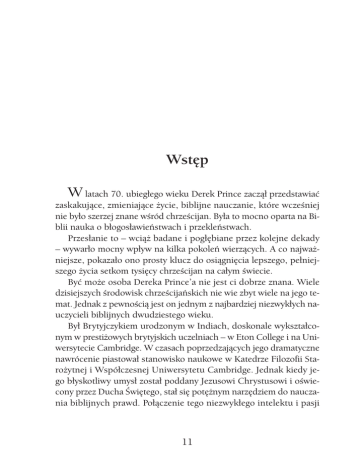 Wst´p W latach 70. ubiegłego wieku Derek Prince zaczàł przedstawiaç zaskakujàce, zmieniajàce ˝ycie, biblijne nauczanie, które wczeÊniej nie było szerzej znane wÊród chrzeÊcijan. Była to mocno oparta na Biblii nauka o błogosławieƒstwach i przekleƒstwach. Przesłanie to – wcià˝ badane i pogł´biane przez kolejne dekady – wywarło mocny wpływ na kilka pokoleƒ wierzàcych. A co najwa˝niejsze, pokazało ono prosty klucz do osiàgni´cia lepszego, pełniejszego ˝ycia setkom tysi´cy chrzeÊcijan na całym Êwiecie. Byç mo˝e osoba Dereka Prince’a nie jest ci dobrze znana. Wiele dzisiejszych Êrodowisk chrzeÊcijaƒskich nie wie zbyt wiele na jego temat. Jednak z pewnoÊcià jest on jednym z najbardziej niezwykłych nauczycieli biblijnych dwudziestego wieku. Był Brytyjczykiem urodzonym w Indiach, doskonale wykształconym w presti˝owych brytyjskich uczelniach – w Eton College i na Uniwersytecie Cambridge. W czasach poprzedzajàcych jego dramatyczne nawrócenie piastował stanowisko naukowe w Katedrze Filozofii Staro˝ytnej i Współczesnej Uniwersytetu Cambridge. Jednak kiedy jego błyskotliwy umysł został poddany Jezusowi Chrystusowi i oÊwiecony przez Ducha Âwi´tego, stał si´ pot´˝nym narz´dziem do nauczania biblijnych prawd. Połàczenie tego niezwykłego intelektu i pasji 11 BŁOGOSŁAWIE¡STWO CZY PRZEKLE¡STWO do zgł´biania prawdy zaowocowało otwarciem na Słowo Bo˝e i płynàce z niego objawienie. Przez ponad pi´çdziesiàt lat, w niezliczonych miejscach na szeÊciu kontynentach, Derek Prince głosił, nauczał, wykładał i inspirował. Swoje nauczania dokumentował, stajàc si´ autorem wielu ksià˝ek, artykułów i traktatów. Trudno jest obecnie przeceniç wpływ, jaki ten pokorny i skromny nauczyciel wywarł na wiele kr´gów i Êrodowisk KoÊcioła na całym Êwiecie. Jesienià 2003 roku Derek Prince zmarł w wieku 88 lat w swojej ukochanej Jerozolimie, w której sp´dził blisko 20 lat. Pozostawił po sobie wspaniały dorobek pisarski. Dla tych, którzy mieli przywilej znaç go osobiÊcie, pozostawił inspirujàcy przykład do naÊladowania – przykład poddania si´ Bogu, umiłowania KoÊcioła, wielkiego serca dla Izraela i płonàcej pasji, by ludzie doÊwiadczyli pełni wolnoÊci i autorytetu, jaki Bóg ofiaruje nam w osobie Jezusa Chrystusa. Wszystkim nam zostawił wspaniałe przesłanie spisane w ksià˝kach, artykułach, kazaniach i listach. Trzymasz w r´ku szczególnà cz´Êç tej spuÊcizny. W kolejnym wydaniu ksià˝ki Błogosławieƒstwo czy przekleƒstwo znajdziesz pomocne studium podsumowujàce ka˝dy rozdział. Ufamy, ˝e zgł´biajàc i stosujàc prawdy, które znajdziesz w kolejnych rozdziałach – czytajàc je indywidualnie czy te˝ studiujàc w grupie – odkryjesz pomoc do chodzenia w wi´kszej wolnoÊci, błogosławieƒstwie i pełni, jakà oferuje ci Bóg. ˚yczymy ci, abyÊ doÊwiadczył wszystkich błogosławieƒstw, które Jezus zdobył dla ciebie umierajàc na krzy˝u. Zespół DPM 12