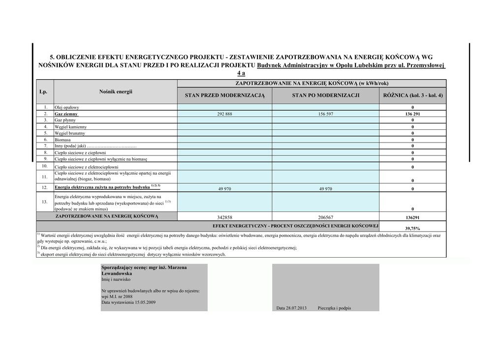 5. obliczenia efektu energetycznego Administracyjny Opole