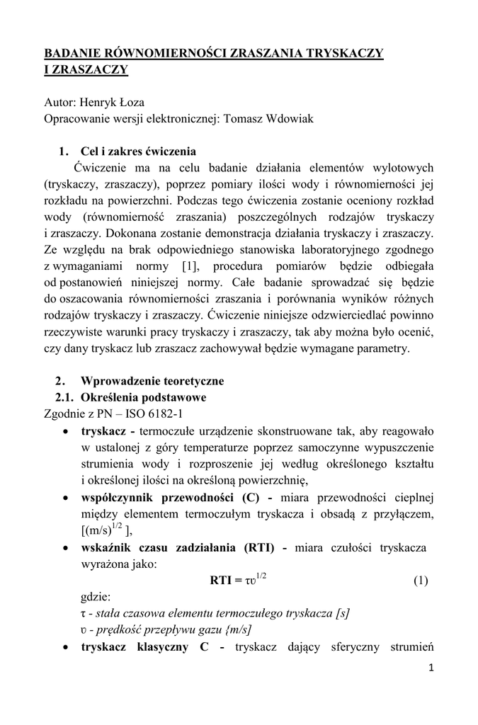BADANIE RÓWNOMIERNOŚCI ZRASZANIA TRYSKACZY I