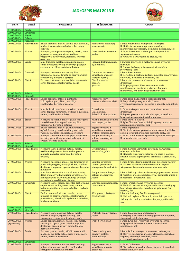 jadłospis maj 2013 r. - Fundacja Nowe Pokolenie